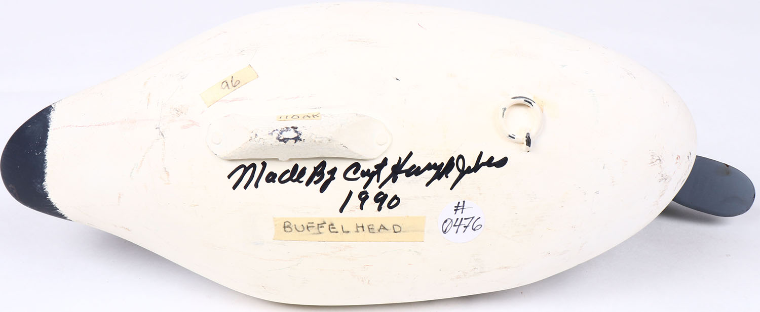 Bufflehead Drake by Capt. Harry Jobes Havre de Grace, MD, painted eyes, solid wood, original paint, structurally excellent, signed on bottom. Grade: Excellent - Value: 70 to 150
