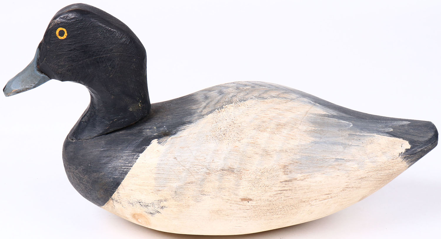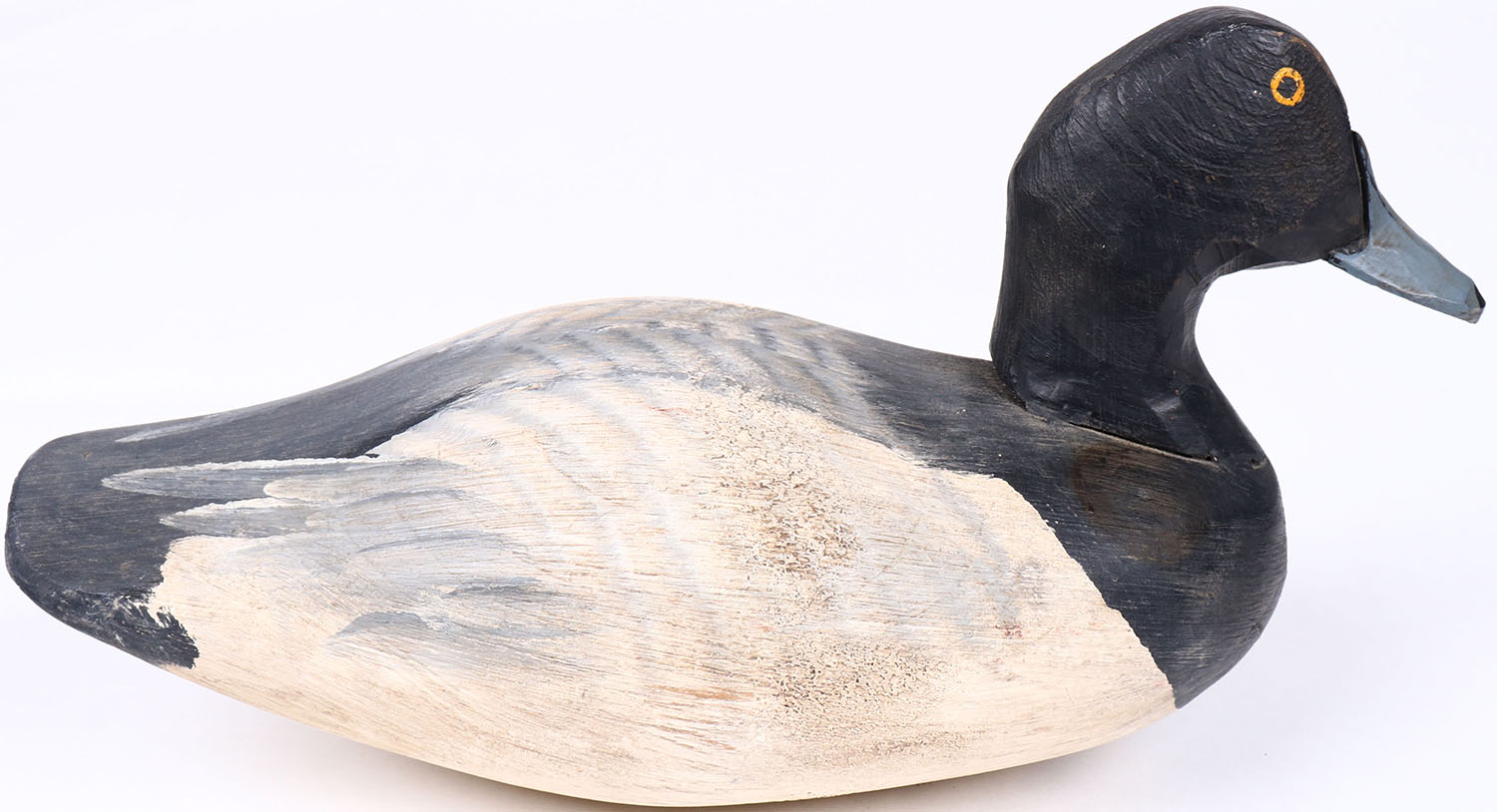 Bluebill Drake by unknown maker, MD, painted eyes, solid wood, original paint, structurally excellent. Grade: Excellent - Value: 30 to 60