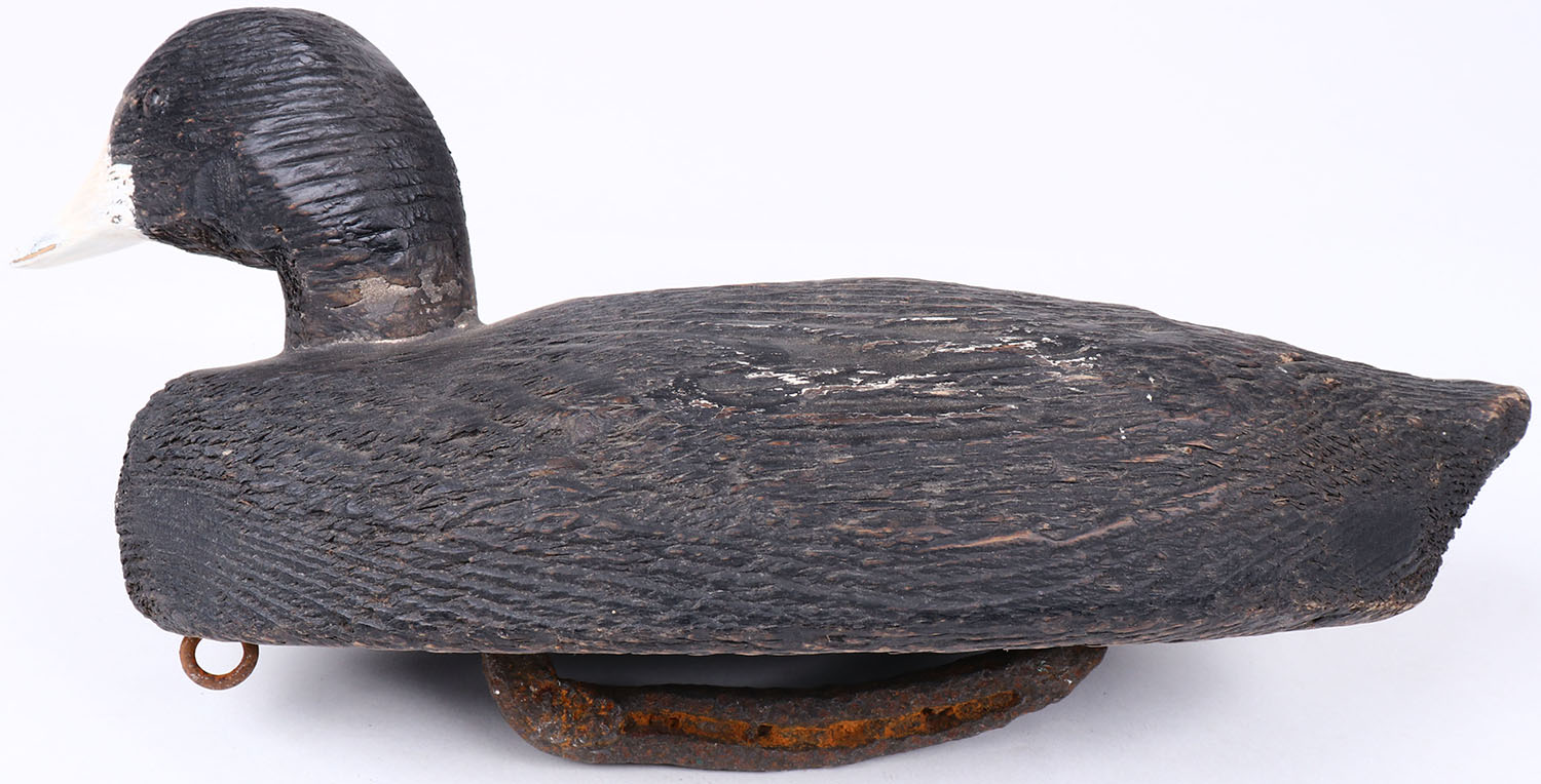 Coot by unknown maker, glass eyes, solid wood, branded KW on bottom, original paint, structurally excellent. Grade: Excellent - Value: 30 to 60