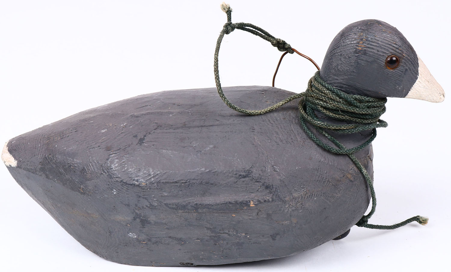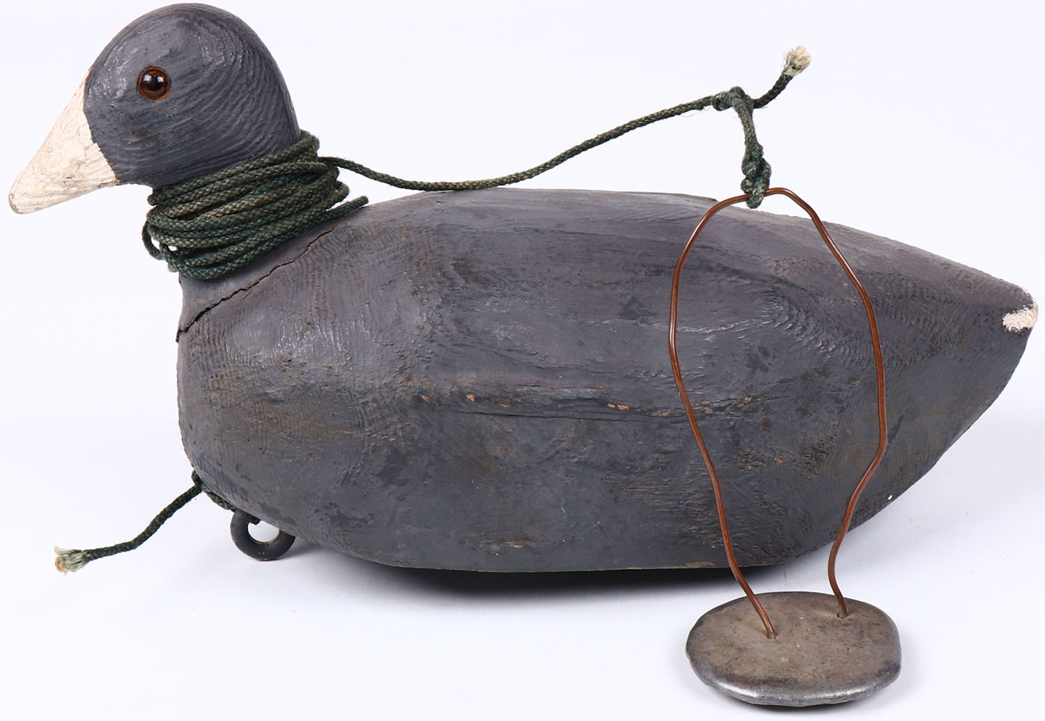 Coot by George Alken, Kaukauna Wisc. Lake Winnebago, has double weight on the bottom front, glass eyes, solid wood, original paint, structurally excellent. Grade: Excellent + - Value: 20 to 40