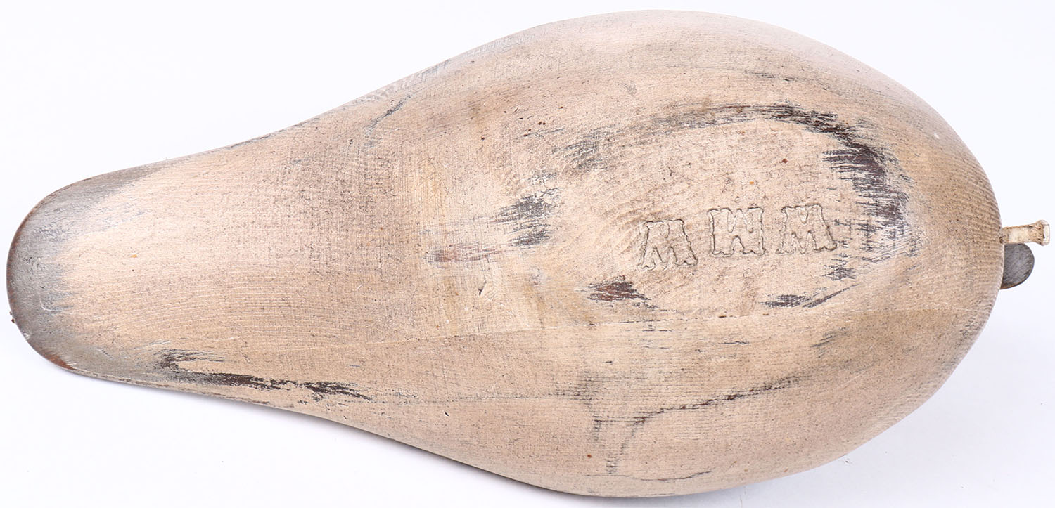 Bufflehead Drake by WMW, glass eyes, hollow wood, original paint, structurally excellent, branded WMW on bottom. Grade: Excellent ++ - Value: 30 to 60