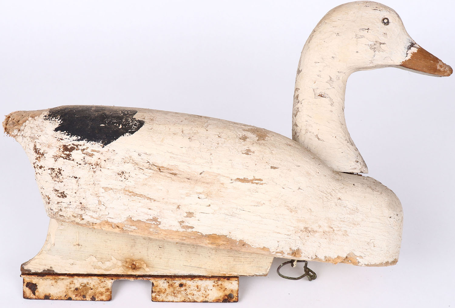 Snow Goose by unknown maker Herters?, glass eyes, solid balsa wood, original paint with typical wear. Grade: Very Good + - Value: 50 to 100