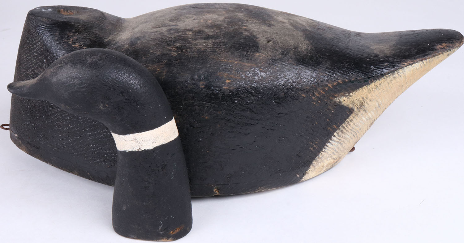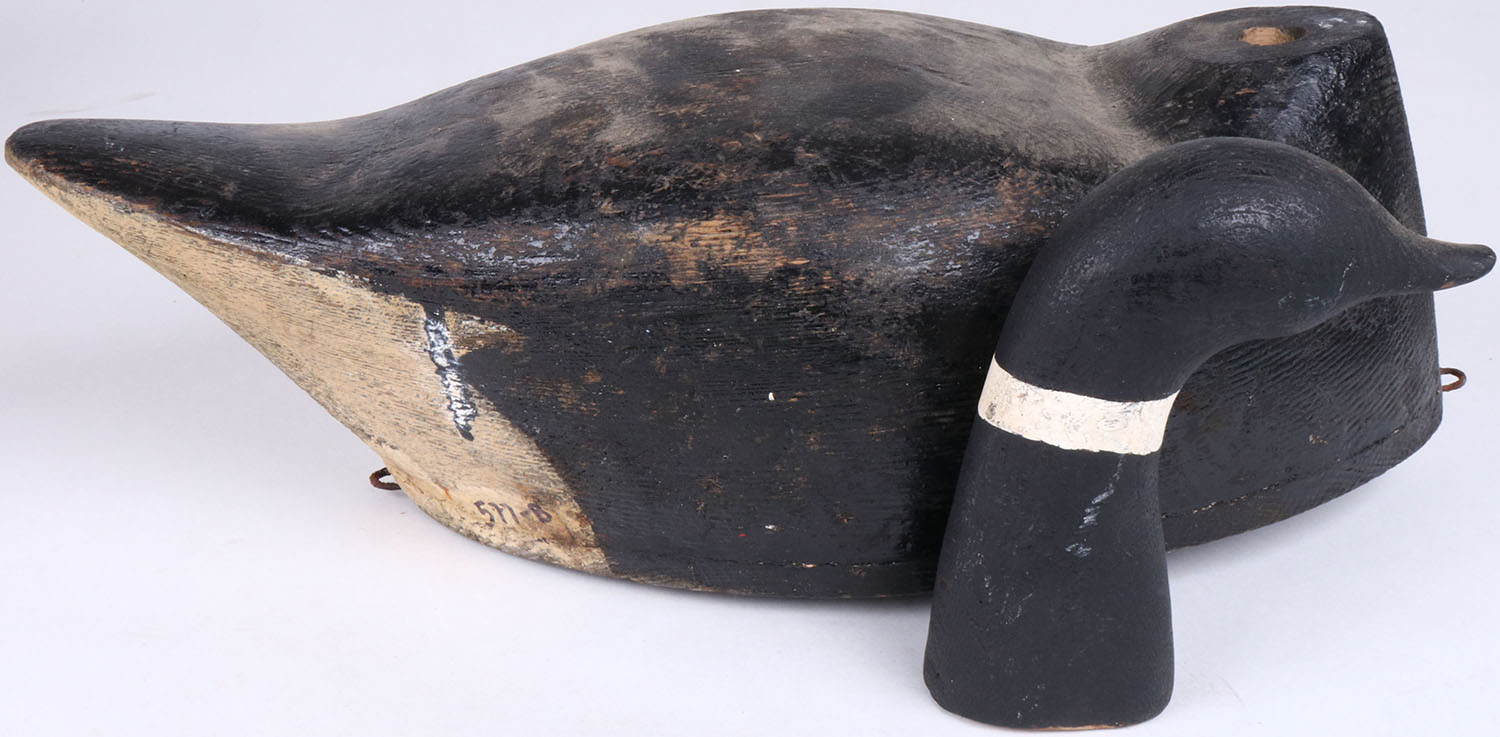 Brant by unknown maker, B.C., painted eyes, hollow wood, original paint, head is not attached. Grade: Excellent - Value: 40 to 80