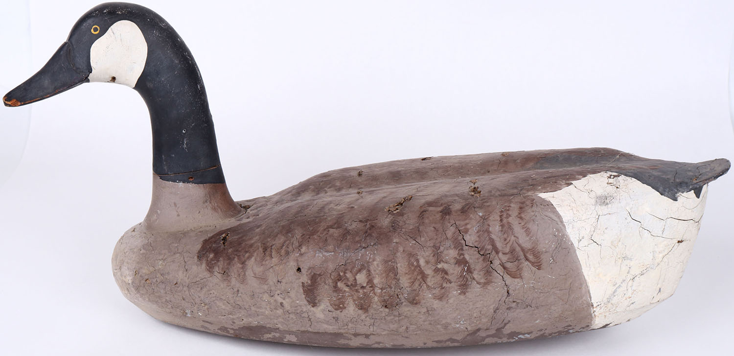 Canada Goose by R. Madison Mitchell Havre De Grace, MD. painted eyes, hollow wood, original paint with typical wear, has age cracks on body, signed on bottom. Grade: Excellent - Value: 60 to 150