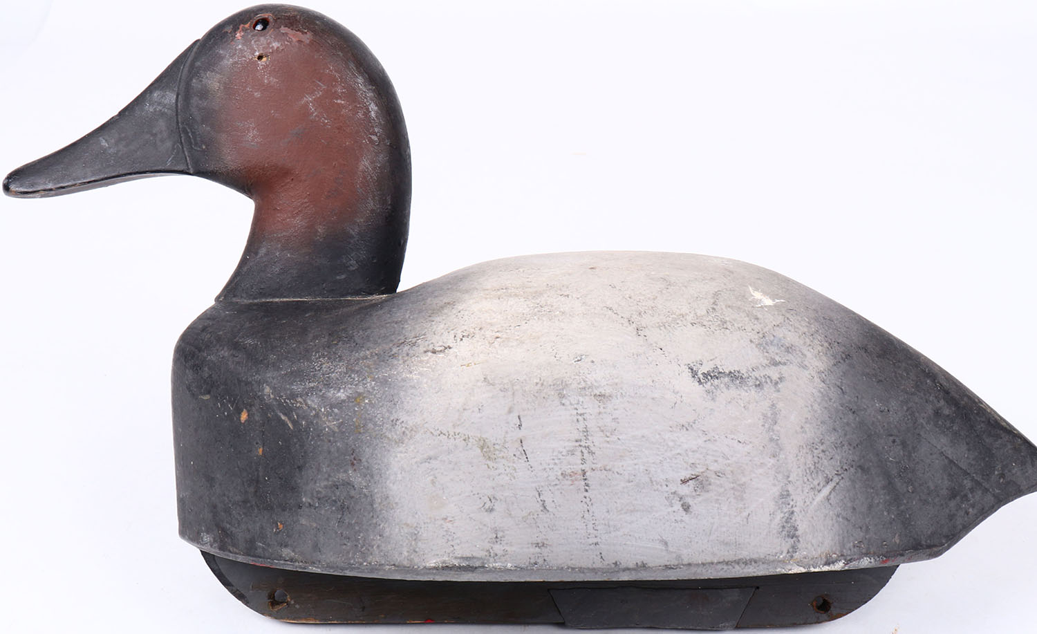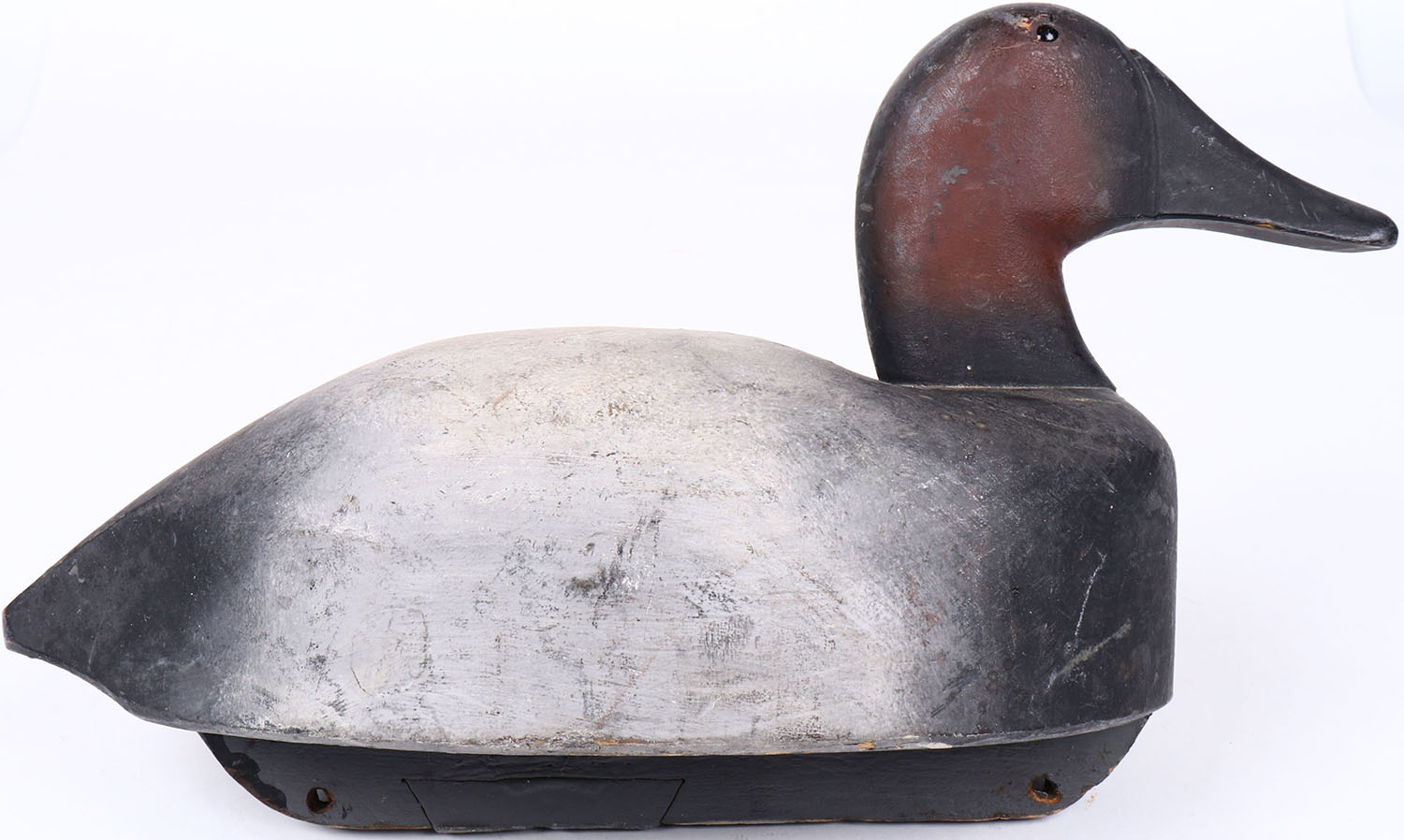 Canvasback Drake by DS, glass eyes, solid wood, original paint, structurally excellent, branded DS on bottom. Grade: Excellent + - Value: 30 to 60
