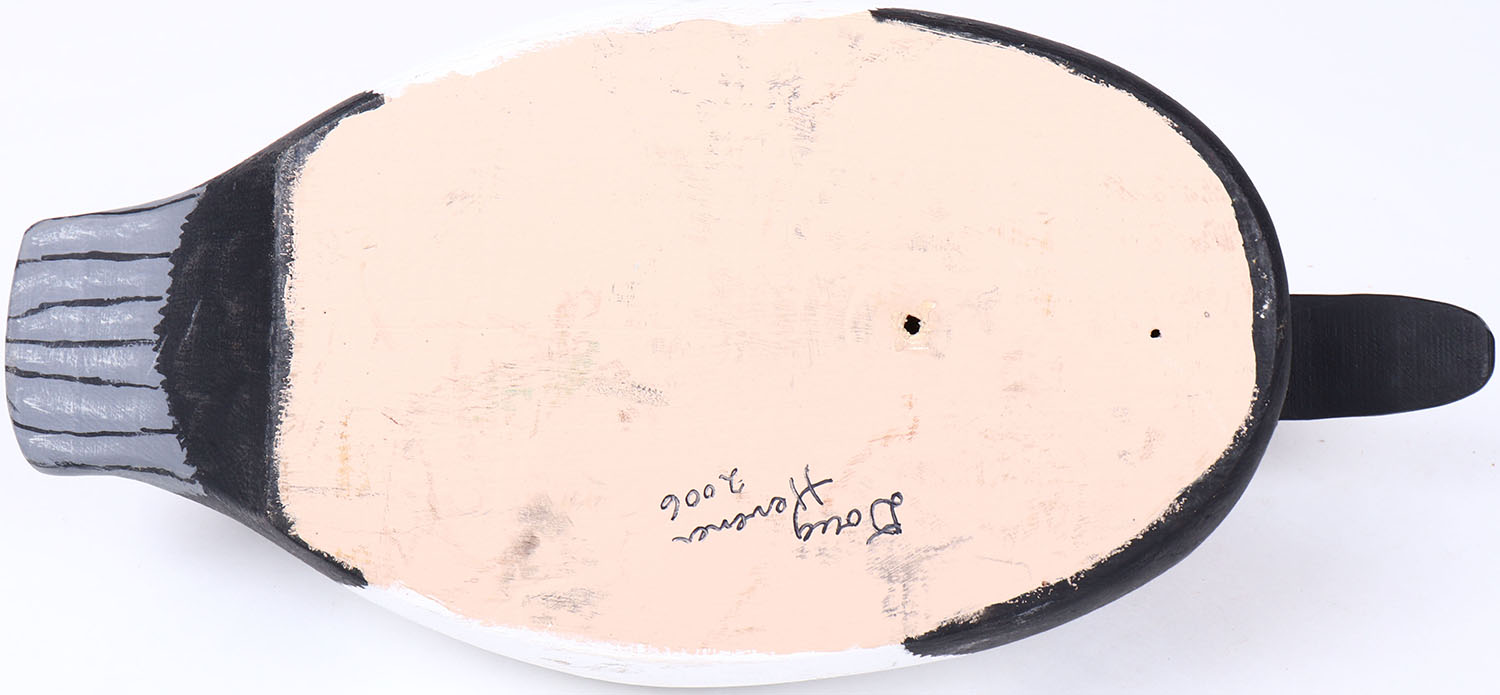 Canvasback Drake by Doug Hevener (2006), Glass eyes, solid wood, original paint, structurally excellent, signed on bottom. Grade: MINT - Value: 30 to 60