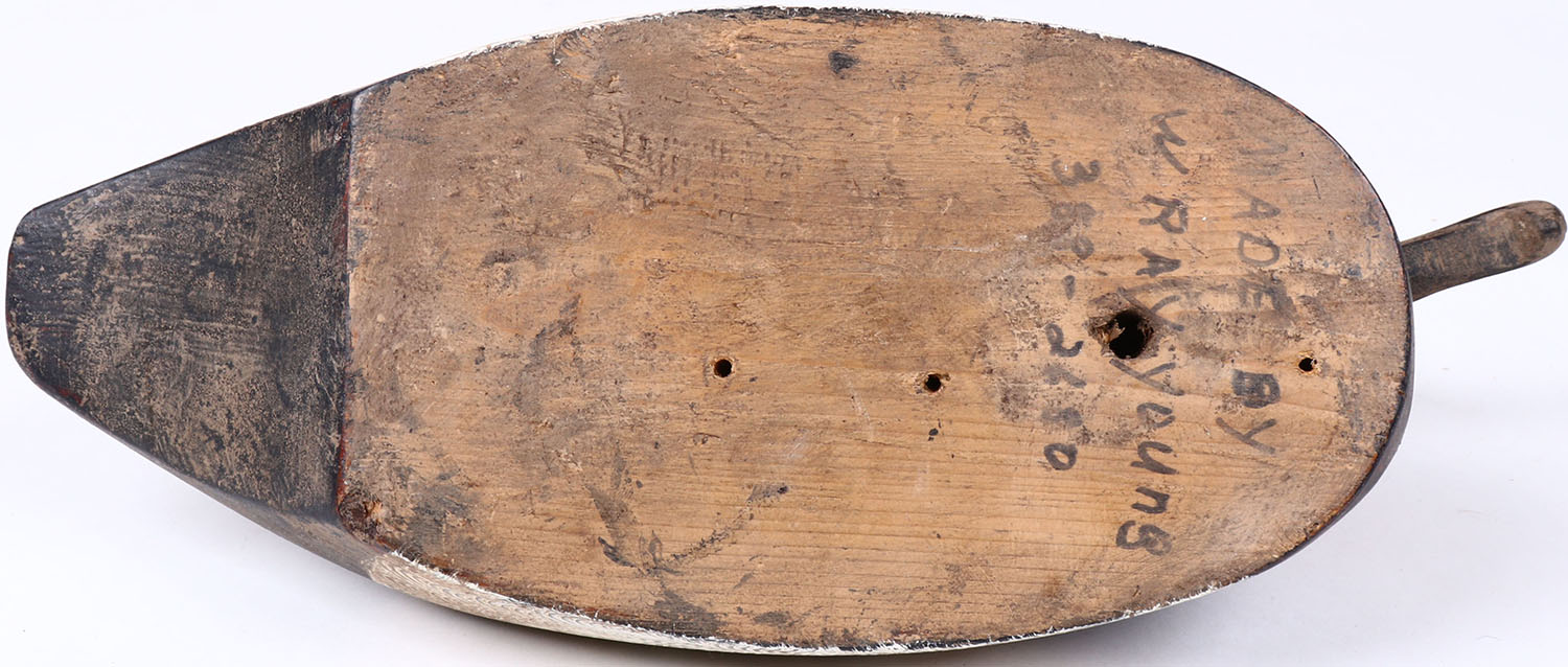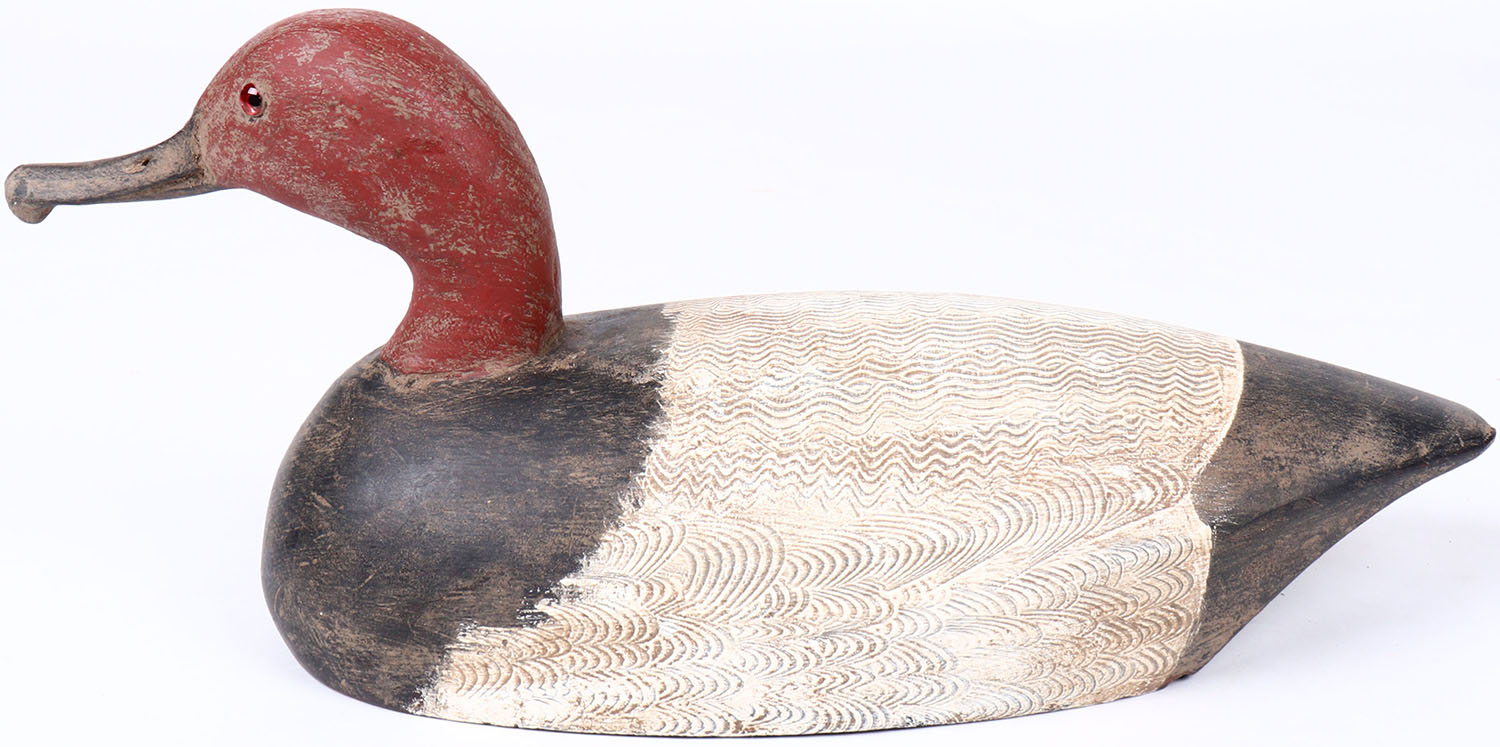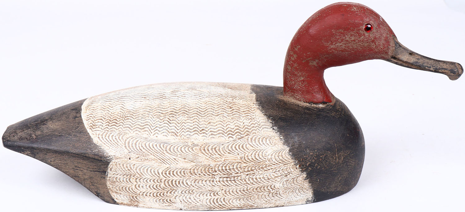 Canvasback Drake by W Ray Young, glass eyes, solid wood, original paint with comb painting, structurally excellent, signed on bottom. Grade: Excellent + - Value: 30 to 60