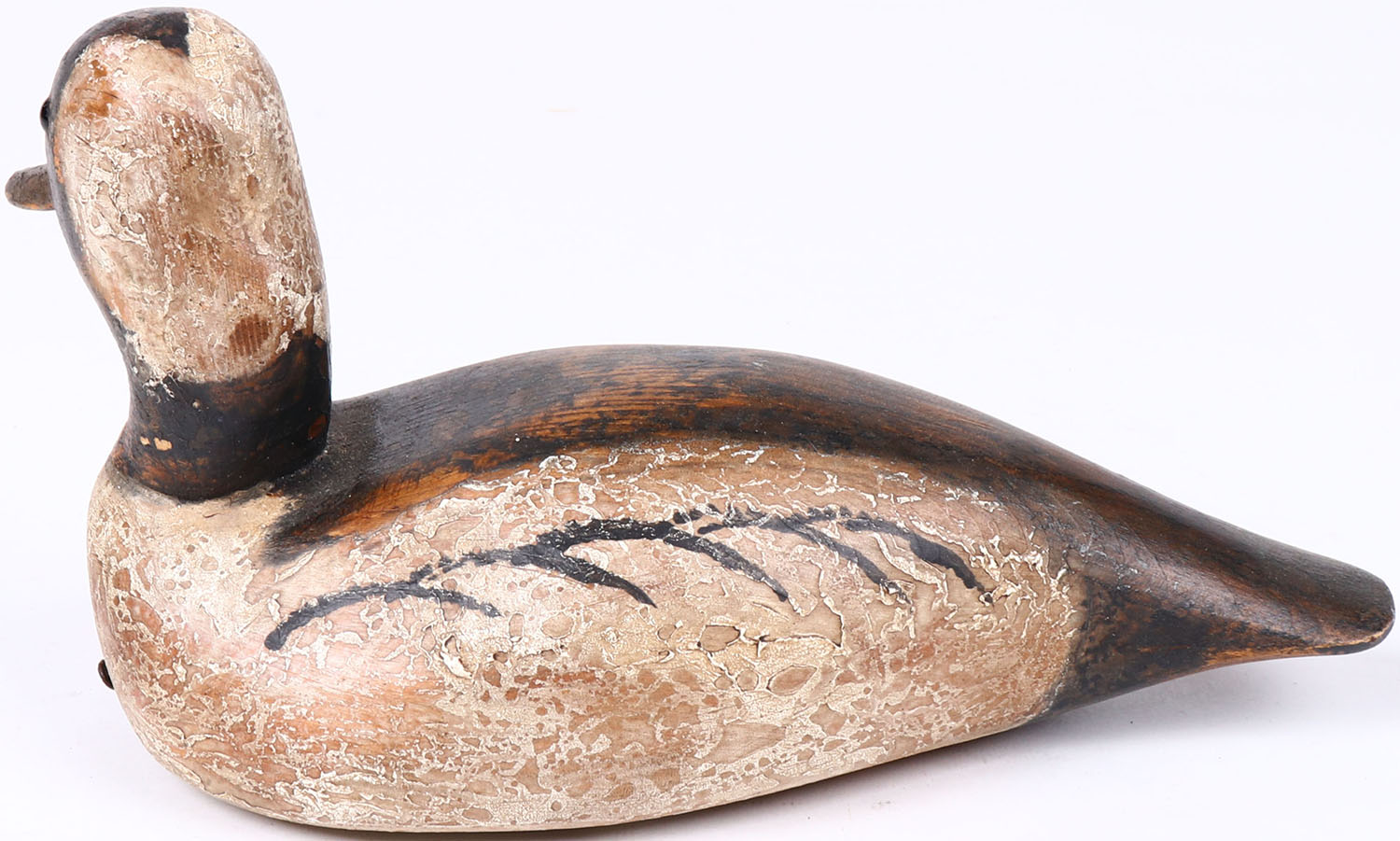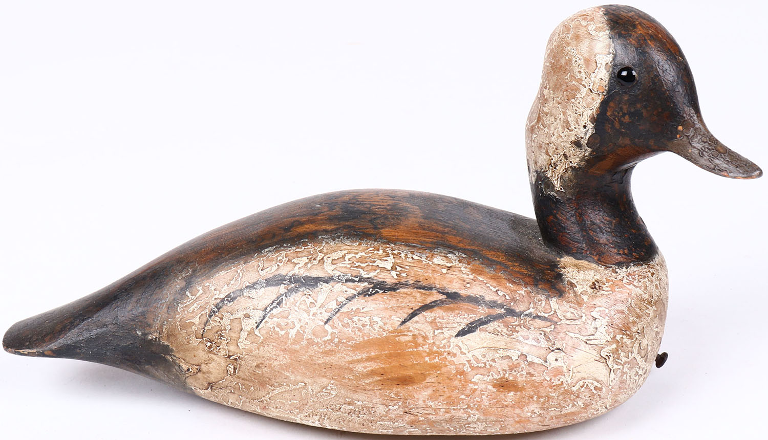 Bufflehead Drake by CWW (Curtis Waterfield?), glass eyes, hollow wood, original paint, structurally excellent, branded CWW on bottom. Grade: Excellent - Value: 40 to 80