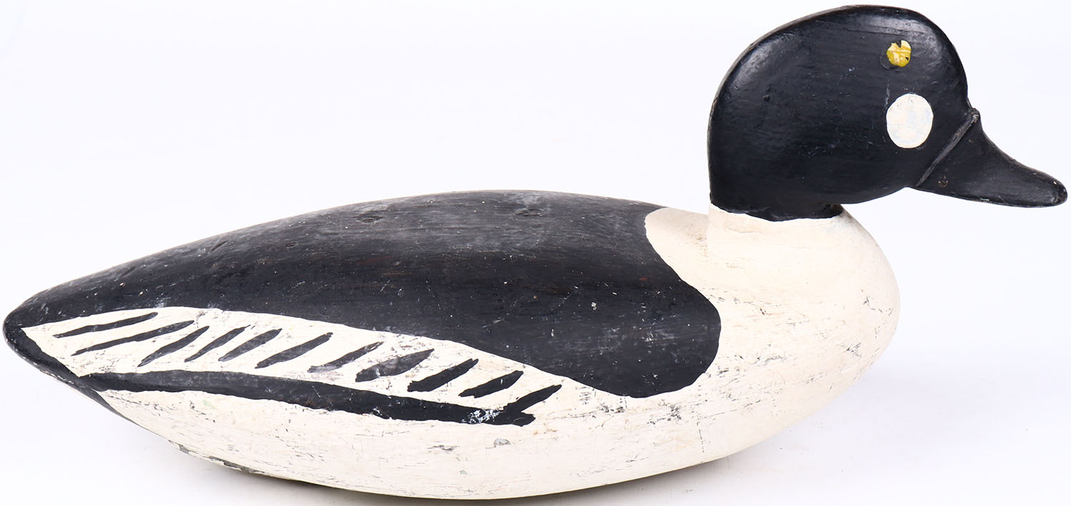 Goldeneye Drake by unknown maker, painted eyes, hollow wood, structurally excellent. Grade: Excellent + - Value: 40 to 80