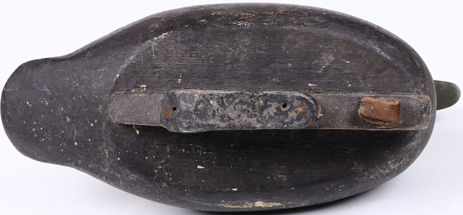 Black Duck by unknown maker, glass eyes, solid wood, neck is slightly loose. Grade: Excellent - Value: 40 to 80
