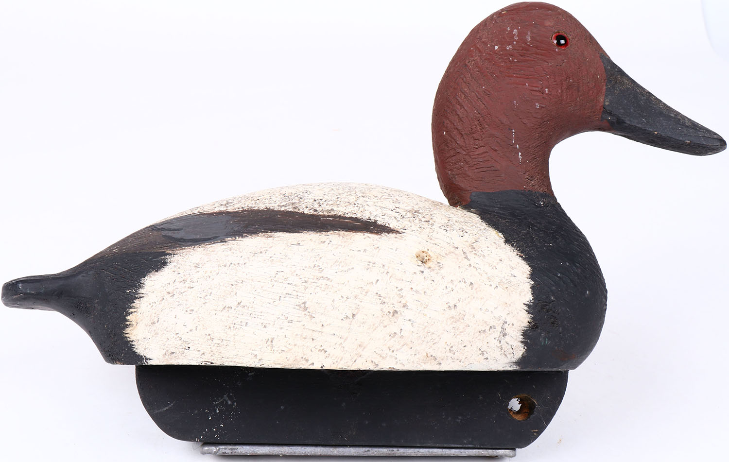 Canvasback Drake by Welsh, glass eyes, hollow wood, original paint, structurally excellent, branded WELSH on bottom. Grade: Excellent ++ - Value: 20 to 40