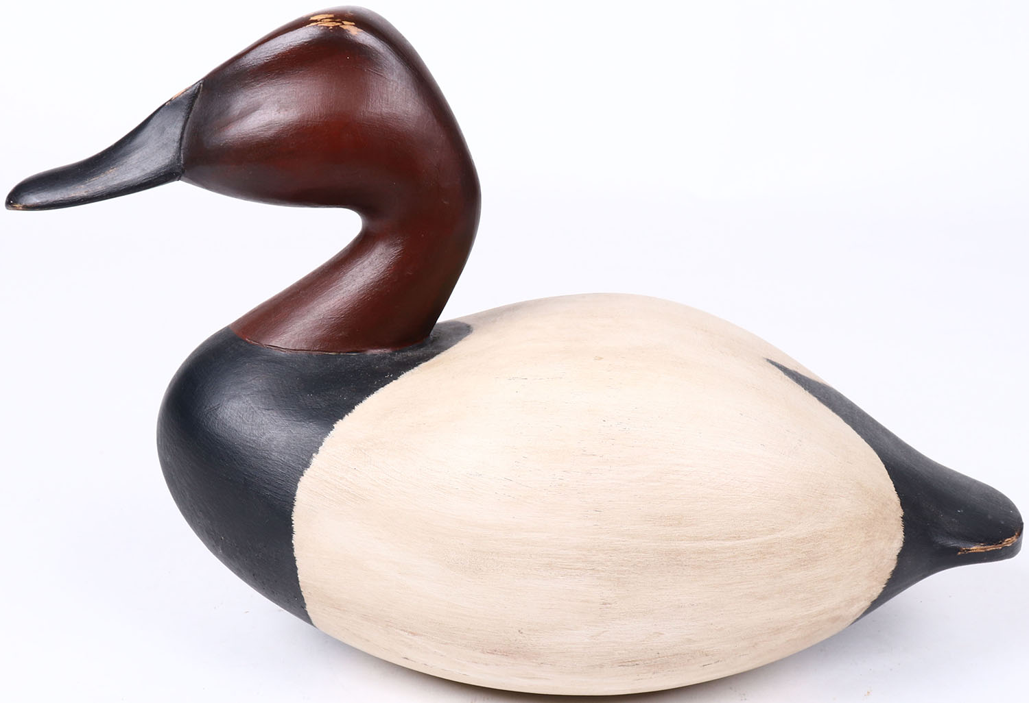 Canvasback Drake by William L. Porterfield, Holtwood, PA. no eyes, solid wood, original paint, structurally excellent, signed on bottom. Grade: Excellent ++ - Value: 50 to 100