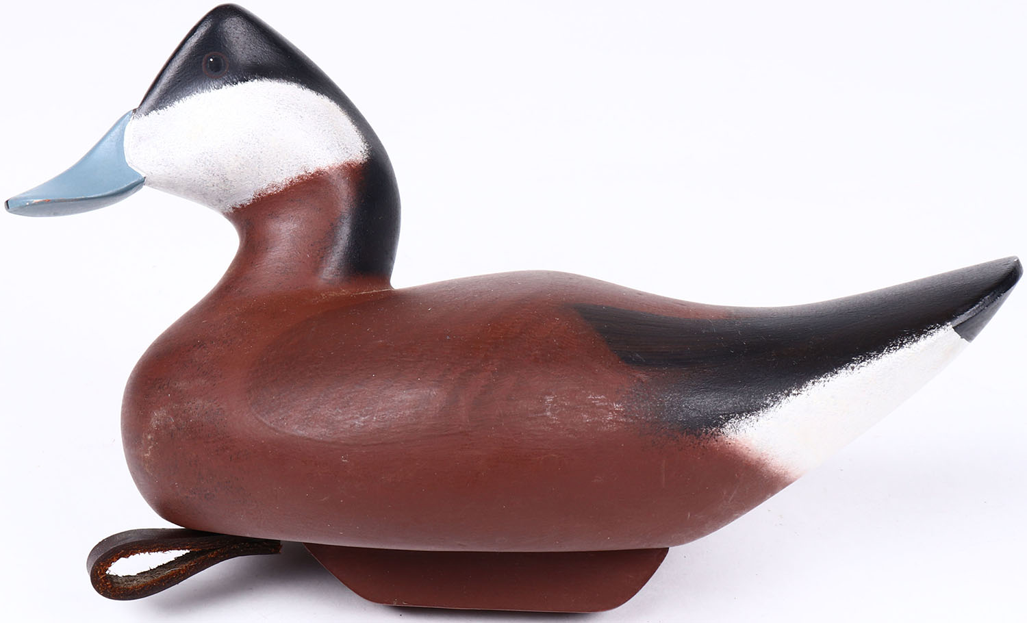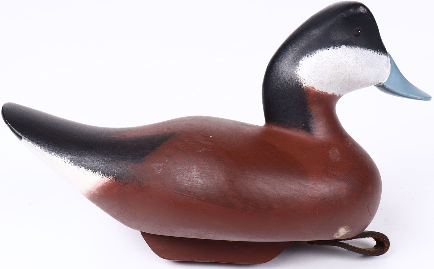 Ruddy Duck Drake by Dan Caroon, Hdg, MD. Painted eyes, hollow wood, original paint, structurally excellent, signed on bottom. Grade: MINT - Value: 40 to 80