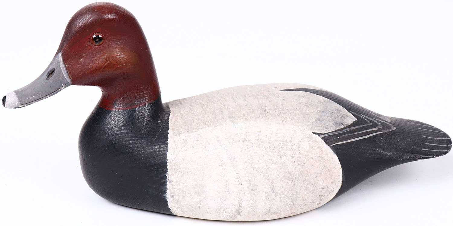 Redhead by H.V. Shourds, glass eyes, hollow wood, original paint, structurally excellent, signed on bottom. Grade: MINT - Value: 30 to 60