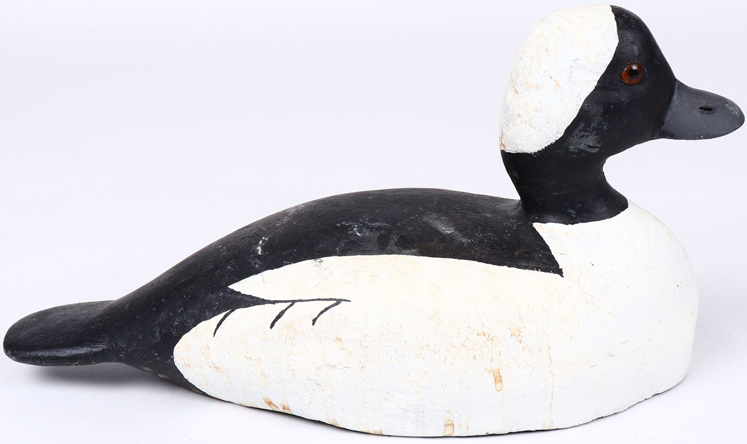 Bufflehead Drake by unknown maker, glass eyes, hollow wood, original paint, structurally excellent. Grade: Excellent + - Value: 30 to 60