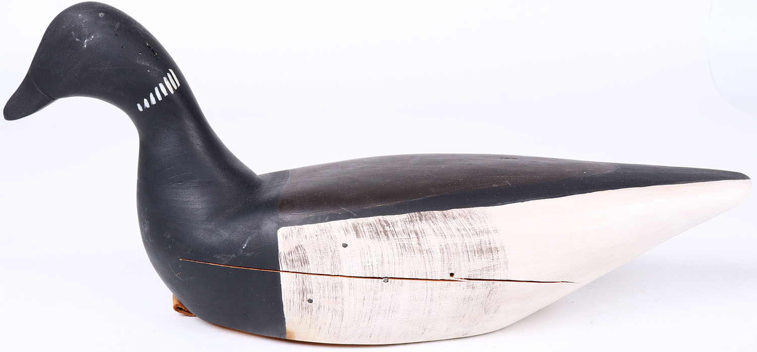 Black Brant by Mendell Martin and Rich Smoker, no eyes, solid wood, original paint, has age crack on side of body, signed
