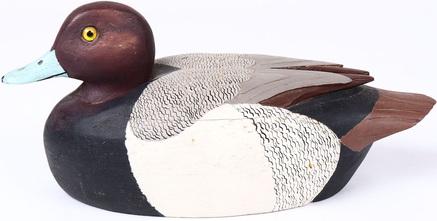 Redhead Drake by unknown maker, glass eyes, hollow wood, original paint, structurally excellent. Grade: MINT - Value: 50 to 100