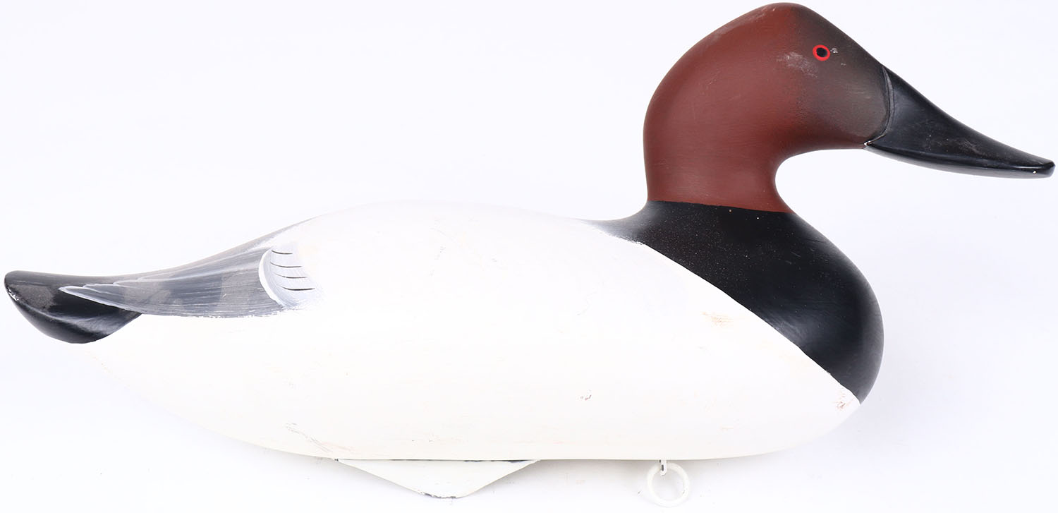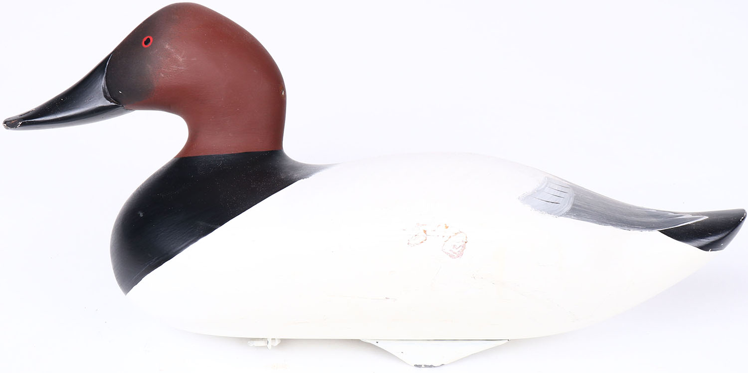 Canvasback Drake by unknown maker, painted eyes, solid wood, original paint, structurally excellent. Grade: MINT - Value: 50 to 100