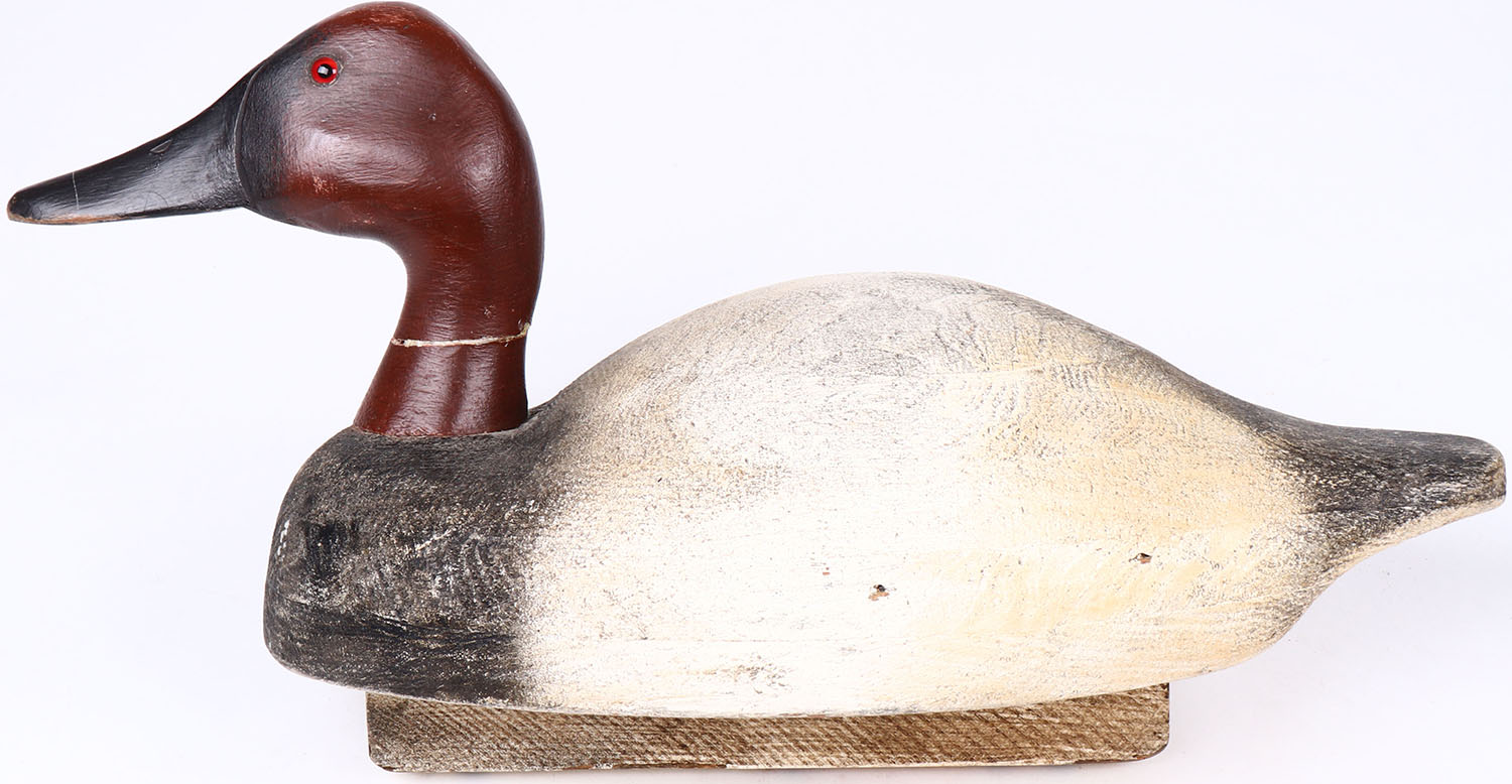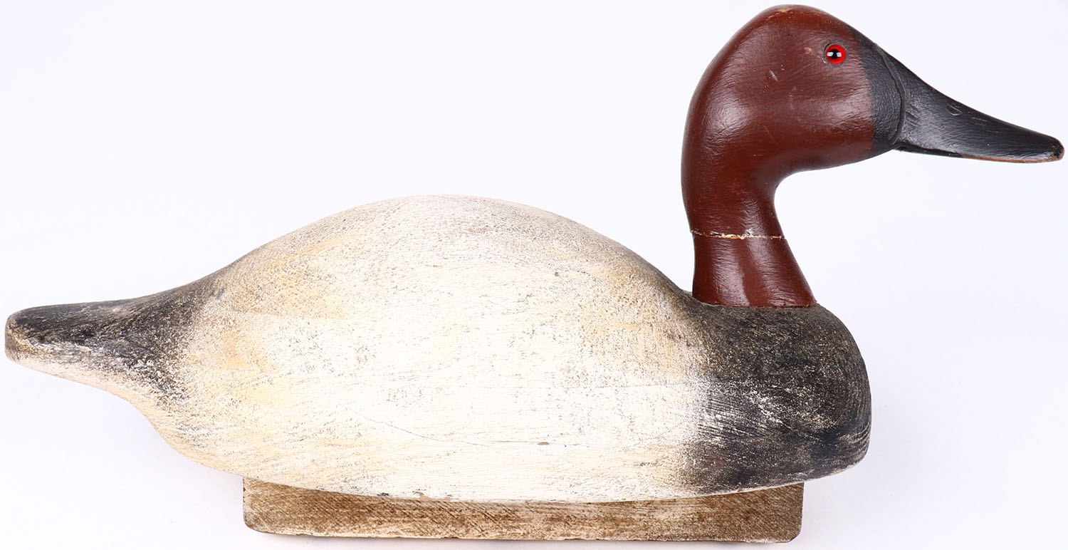 Canvasback Drake by unknown maker, glass eyes, hollow wood, original paint, structurally excellent. Grade: Excellent + - Value: 30 to 60