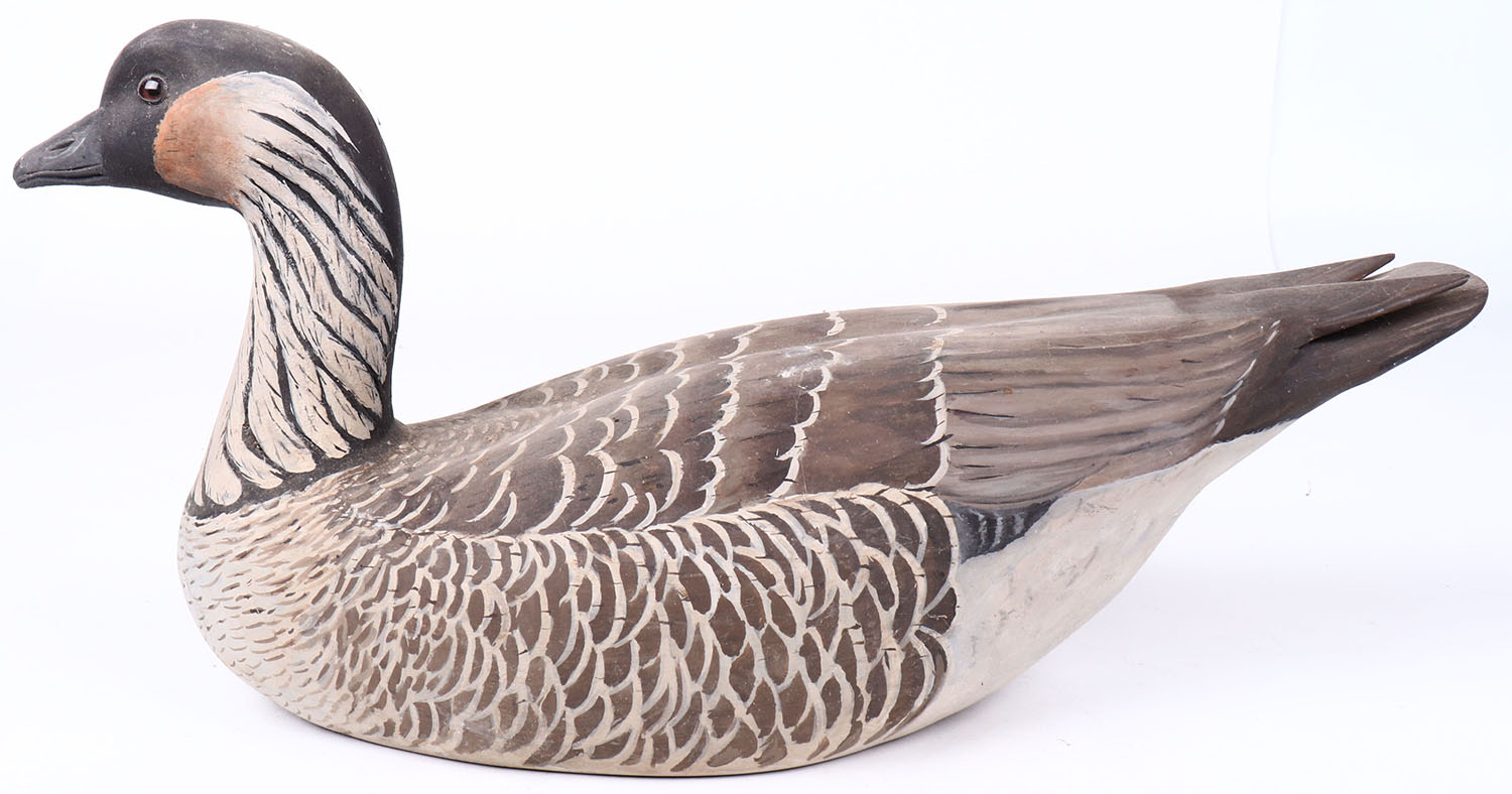 Hawaiian Goose by JEL, glass eyes, hollow wood, original paint, structurally excellent, branded JEL on bottom. Grade: MINT - Value: 100 to 200