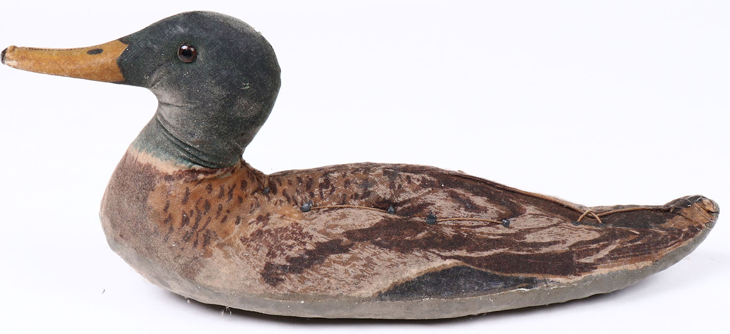 Mallard Drake by unknown maker, glass eyes, canvas over cork, structurally excellent, original paint. Grade: Excellent + - Value: 20 to 40