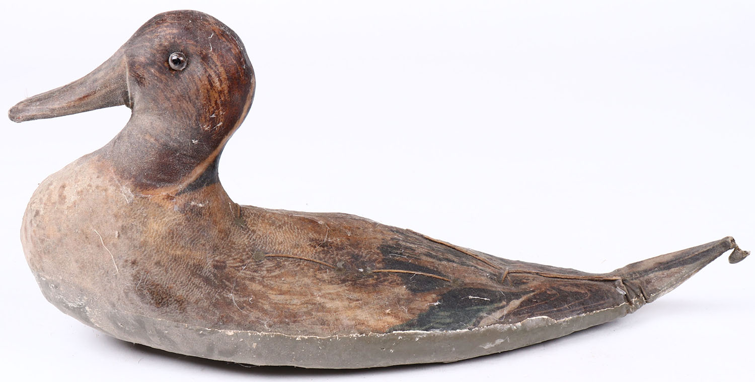 Pintail Drake by unknown maker, glass eyes, canvas over cork, original paint, structurally excellent. Grade: Excellent + - Value: 20 to 40