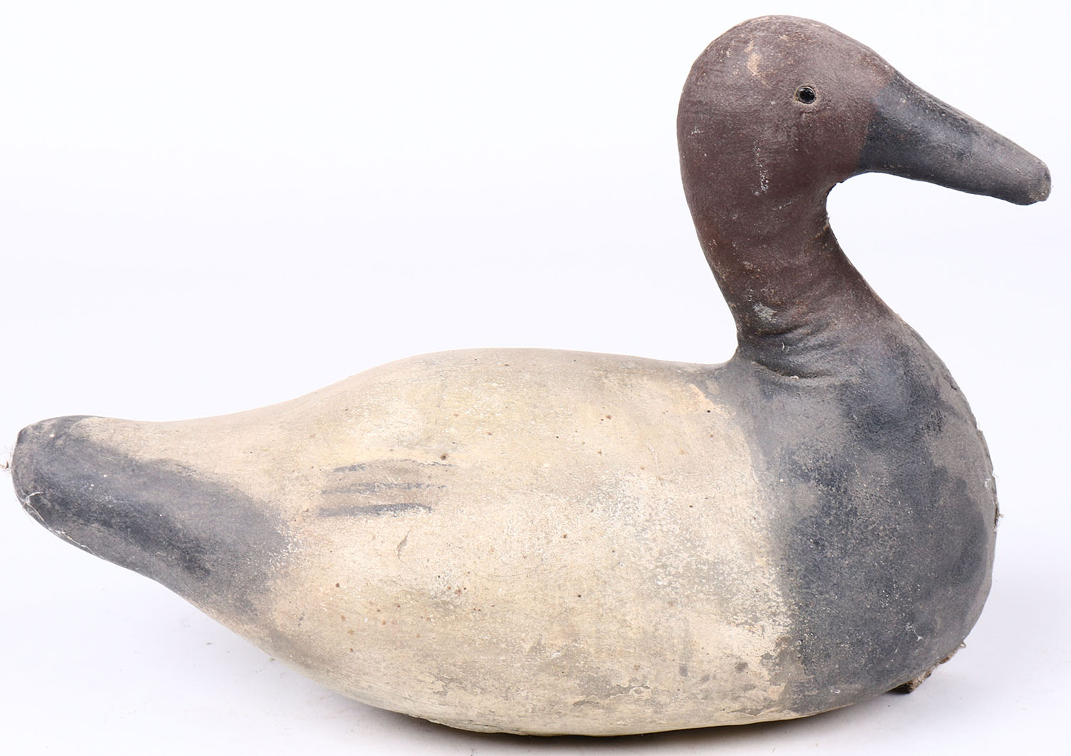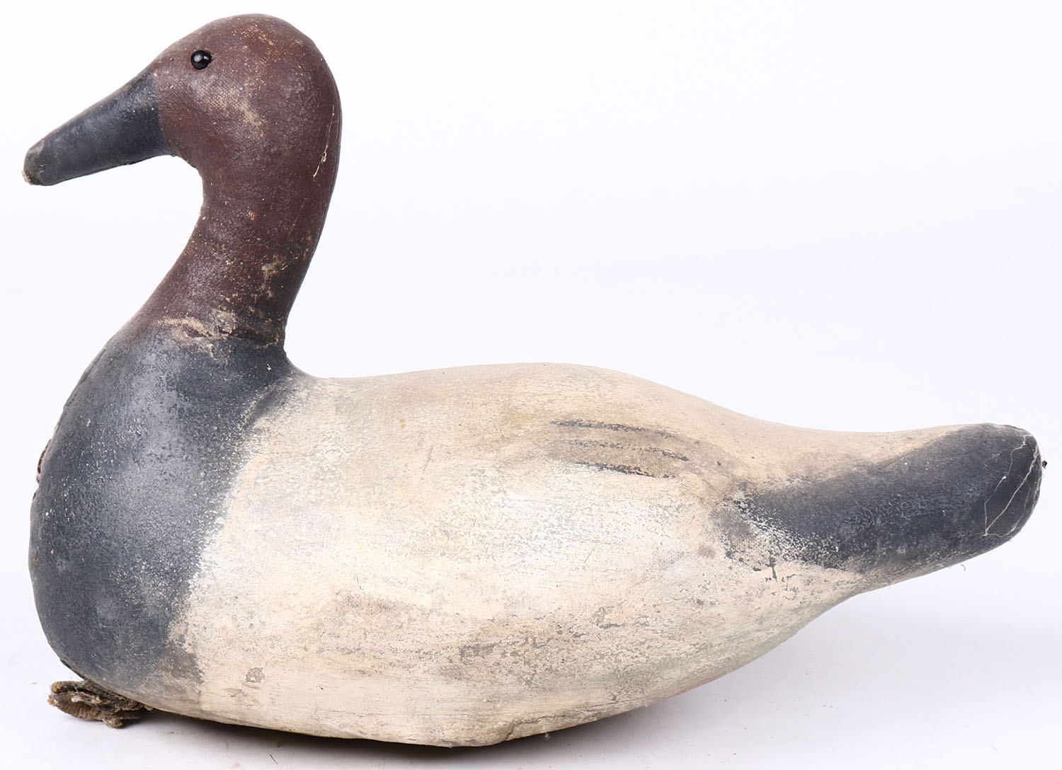 Canvasback Drake by unknown maker, glass eyes, canvas over cork, original paint, structurally excellent. Grade: Excellent + - Value: 20 to 40
