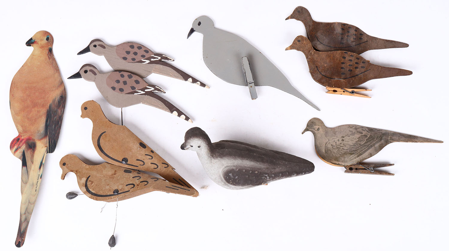 Large lot of Decoys by unknown maker, some have clips on the back that are wood material, has one paper mache' decoy, original paint. Grade: Excellent - Value: 20 to 40