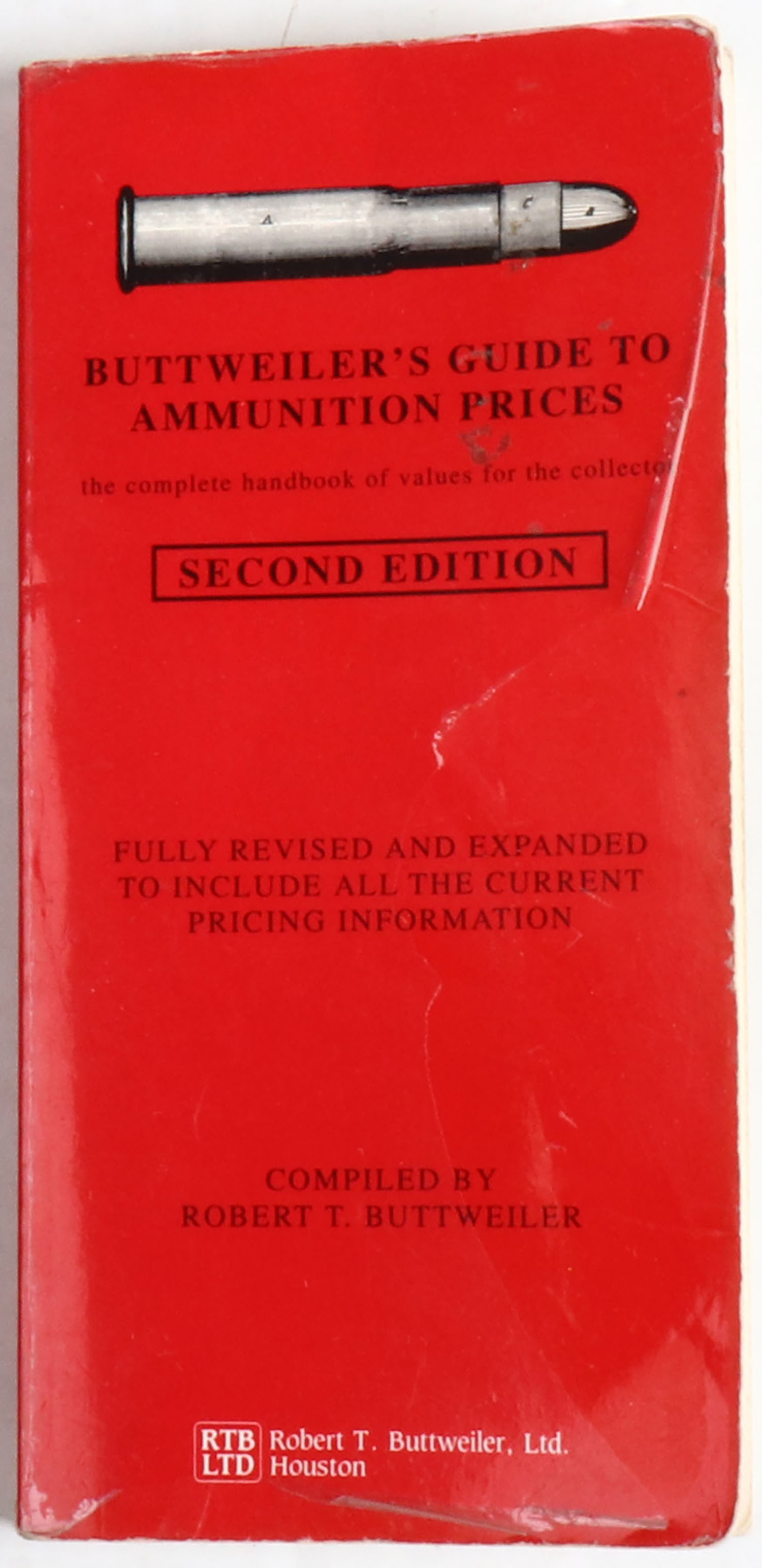Buttweiler's Guide to Ammunition Prices Second Edition by Robert Buttweiler 1992, 4'' x 8''. 219 pages, pages clean, binding tight, softcover very good with some wear. Grade: Excellent - Value: 2 to 60