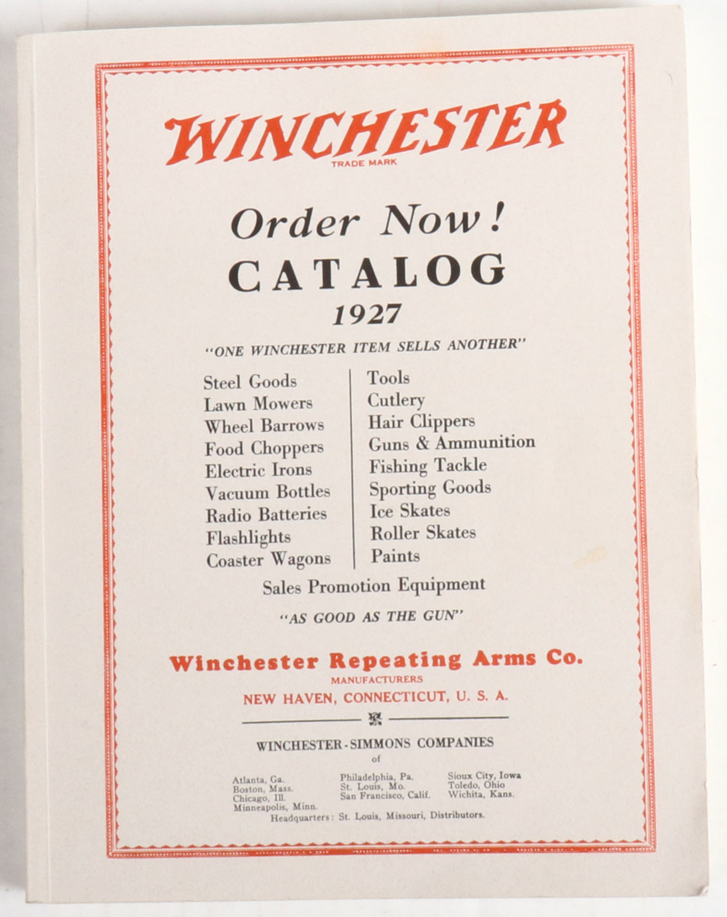 Winchester 1927 Full Line Catalog, 8 1/2'' x 11''. 290 pages, pages clean, binding tight, papercover excellent. Grade: Excellent - Value: 2 to 60