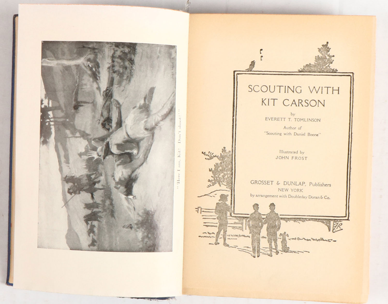 Scout With Kit Carson by Everett T. Tomlinson, 5 1/2'' x 8''. 283 pages, pages clean, binding tight, hardcover very good, b/w images. Grade: Very Good ++ - Value: 2 to 40