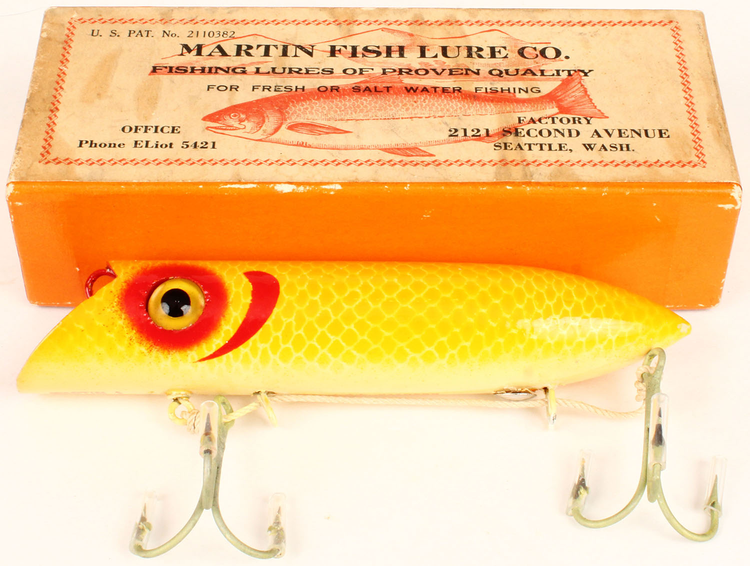 Martin Salmon Plug in original box, 5''. Grade: MINT - Value: 10 to 40