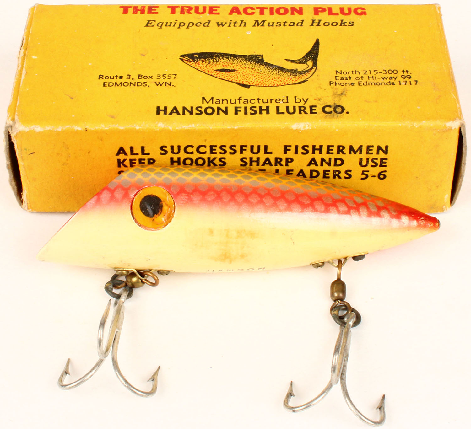 Hanson Salmon Plug in original box, 4''. Grade: Excellent ++ - Value: 10 to 40