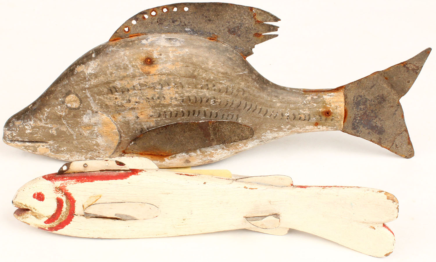 | Lot of 2 Unmarked Ice Fishing Decoy. Grade: Very Good ++ - ...