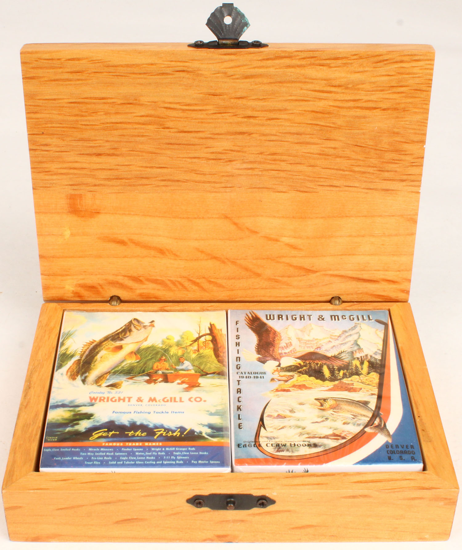 | Lot of 2 Wright & McGill playing cards in wood box. Grade: MIN...