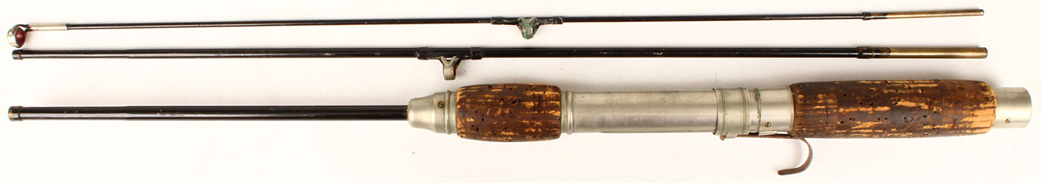 Winchester 3pc. Steel casting rod No. 5505, 4' 7'', all orignal and correct length, cork handle has darkened form age, well marked on reel seat, highly collectible. Grade: Very Good ++ - Value: 20 to 60