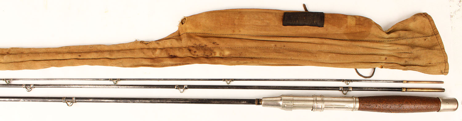 ARMAX (made for Winchester) 4pc. Steel Fly rod No.????, 8', all orignal and correct length, wood handle is nice, well marked on reel seat ring, has marked Winchester bag, highly collectible. Grade: Very Good ++ - Value: 20 to 80
