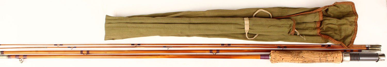 Unmarked Bamboo Fly rod, 3/2, 9', orignal wraps are excellent, cork handle shows light use, has unmarked cloth bag. Grade: Excellent - Value: 10 to 50