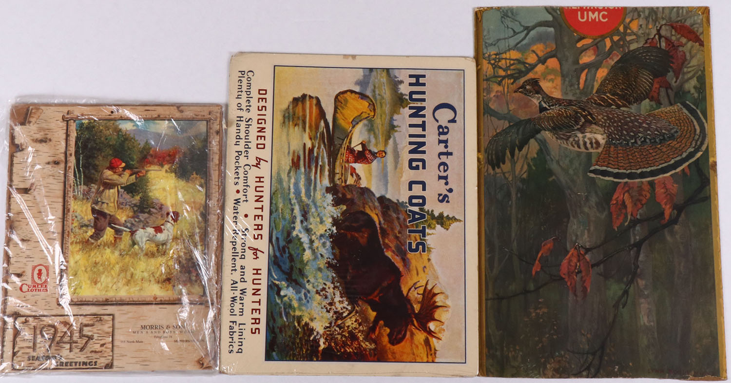 Lot of 3 Advertising pieces, Remington, Carters Hunting coats, and a hunting calendar. Grade: Very Good + - Value: 10 to 100