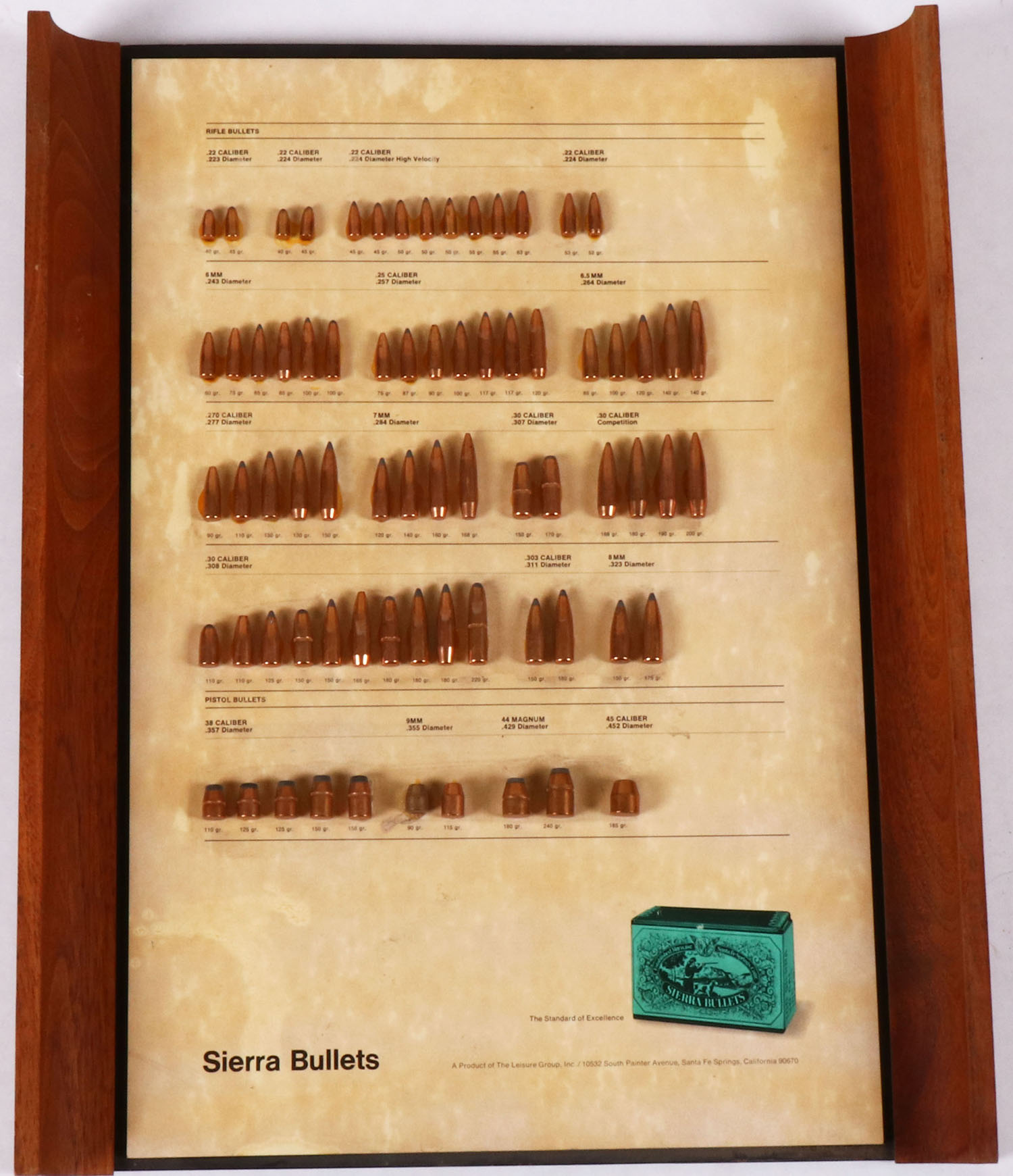Sierra Bullet Board, Pictures a bullet box, Early wood frame version, all bullets intact. Grade: Excellent + - Value: 50 to 200
