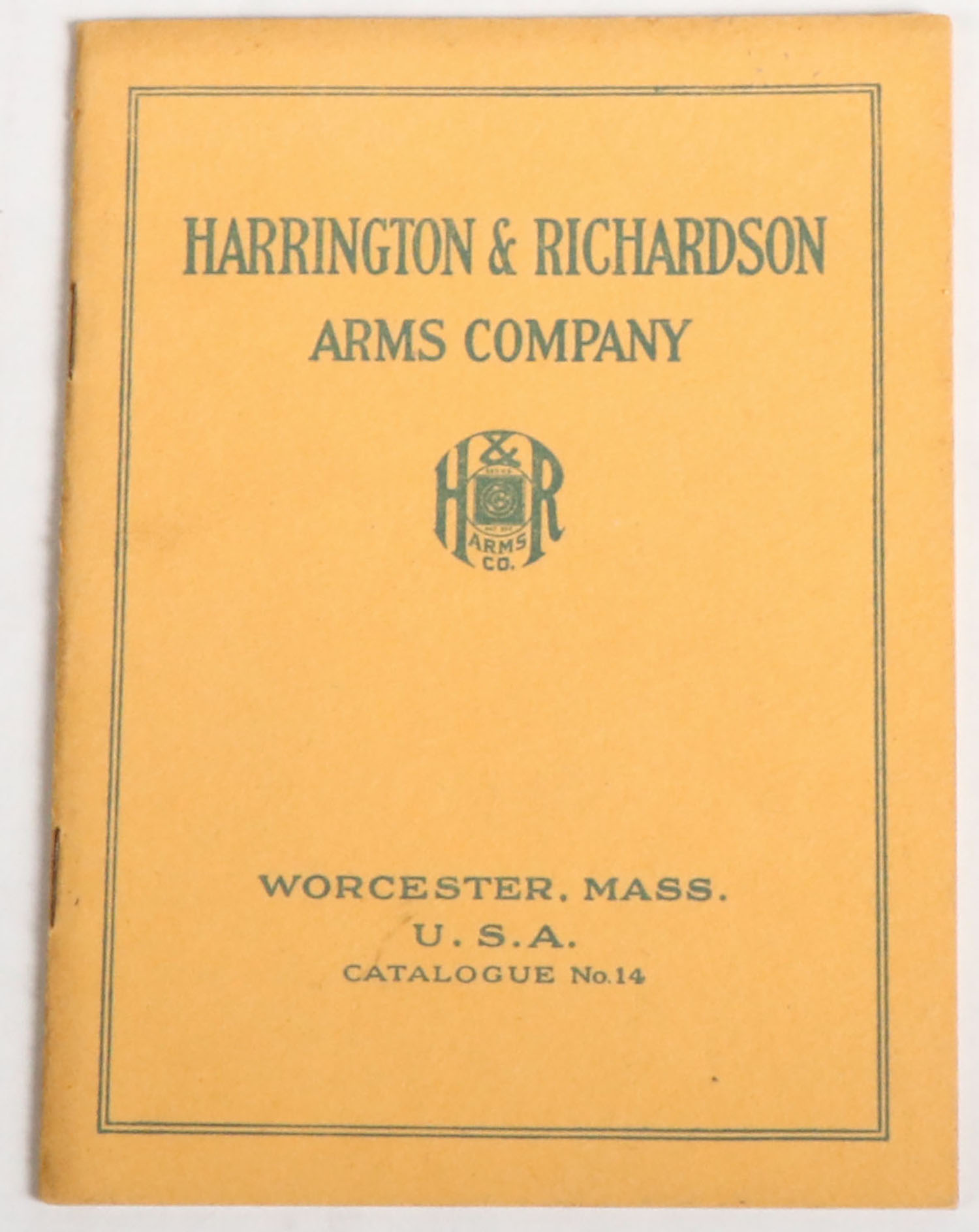 1922 Harrington & Richardson Arms Co. pocket catalog, No. 14, all guns are pictured, 24 pages, 4 1/2'' x 6''. Grade: Excellent ++ - Value: 6 to 30