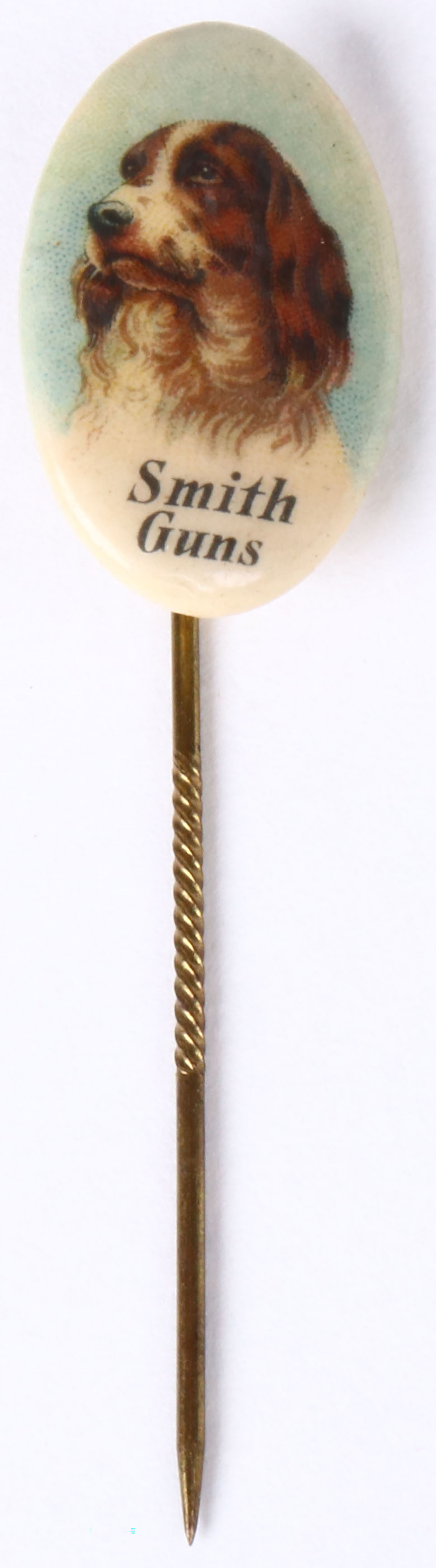 Hunter Arms Co. Smith Guns Stick pinback, pin is bright & clean. Grade: Excellent ++ - Value: 50 to 250