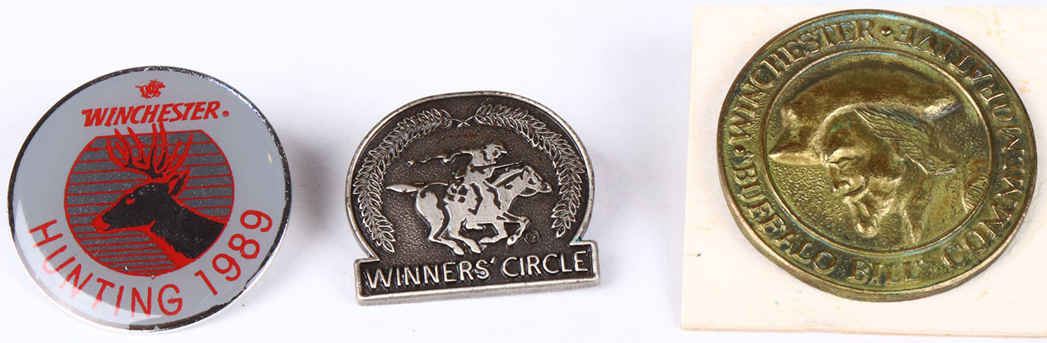 Lot of 3 Winchester pinbacks. Grade: Excellent ++ - Value: 4 to 40