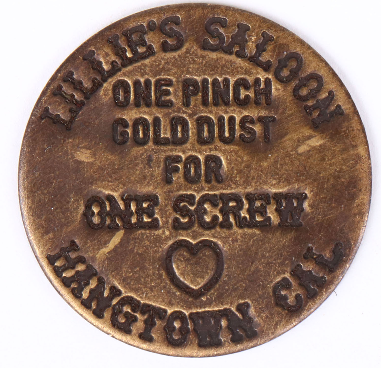 Double sided Brothel Token, Hangtown Cal, 1 1/2'' diameter. Grade: Excellent - Value: 40 to 100