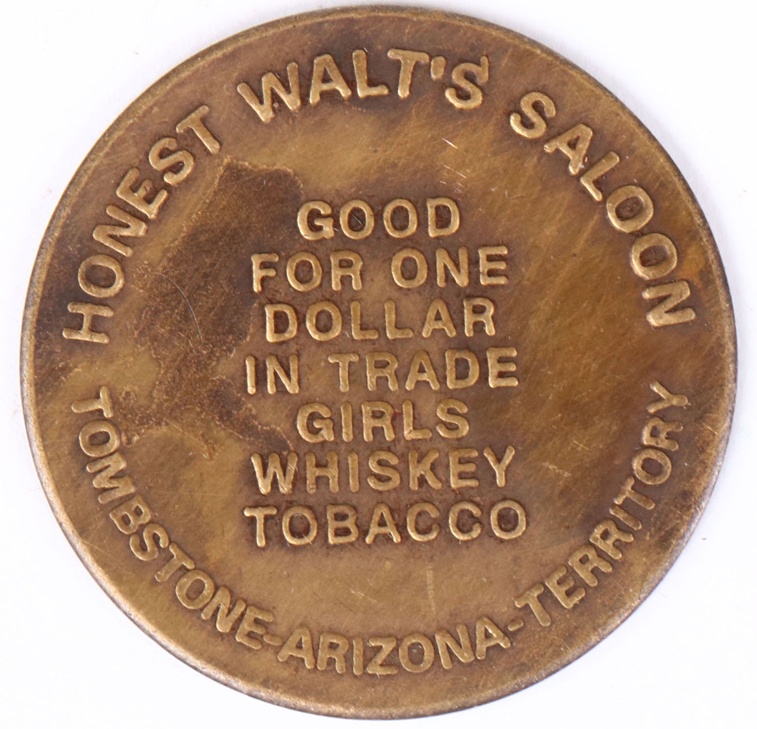 Double sided brass token, 1 1/2'' diameter, Tombstone, AZ. Grade: Excellent - Value: 30 to 100