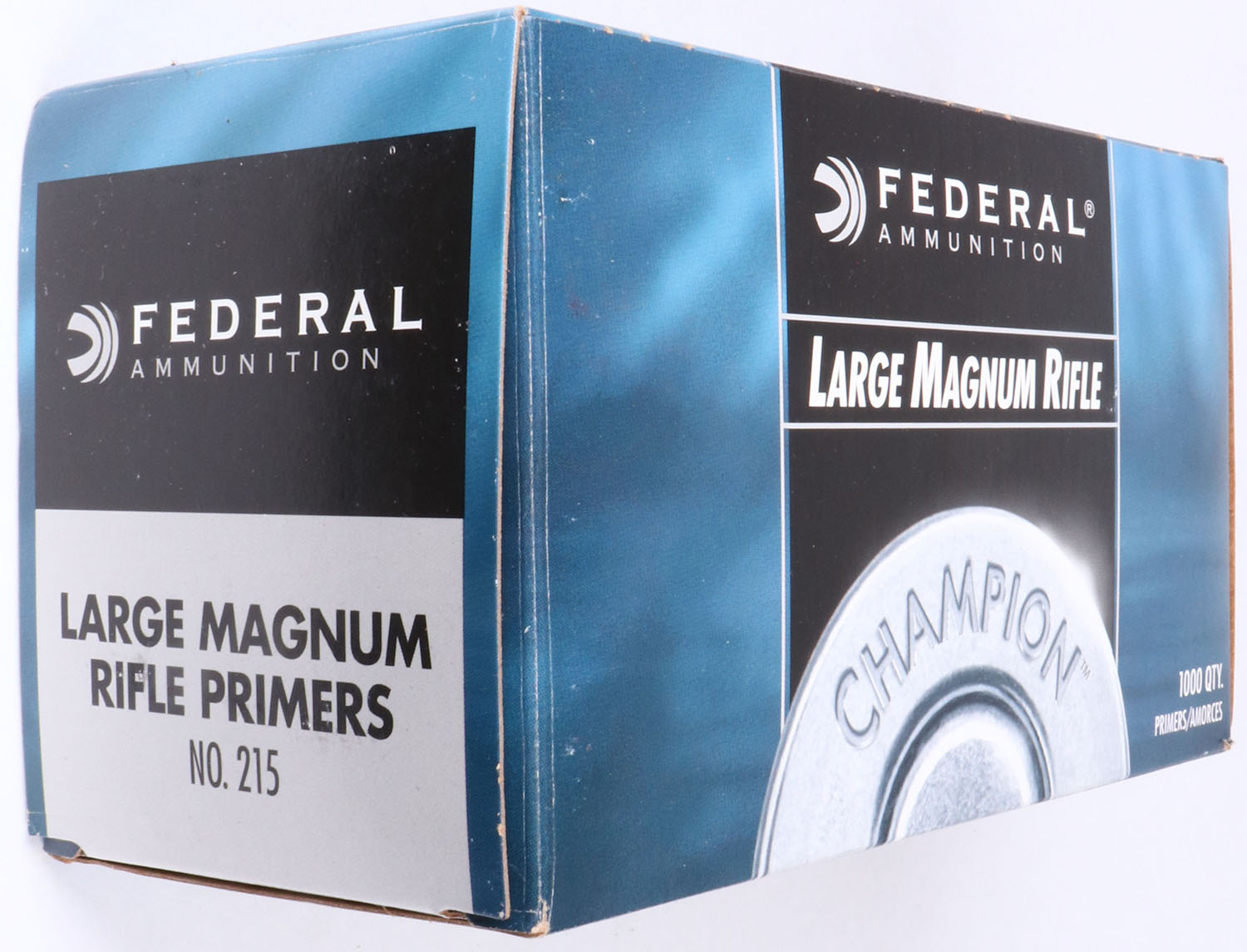 Federal primer brick, FULL, Large Magnum rifle primers, 1000 in the brick, all bright and clean. Grade: Excellent ++ - Value: 20 to 200