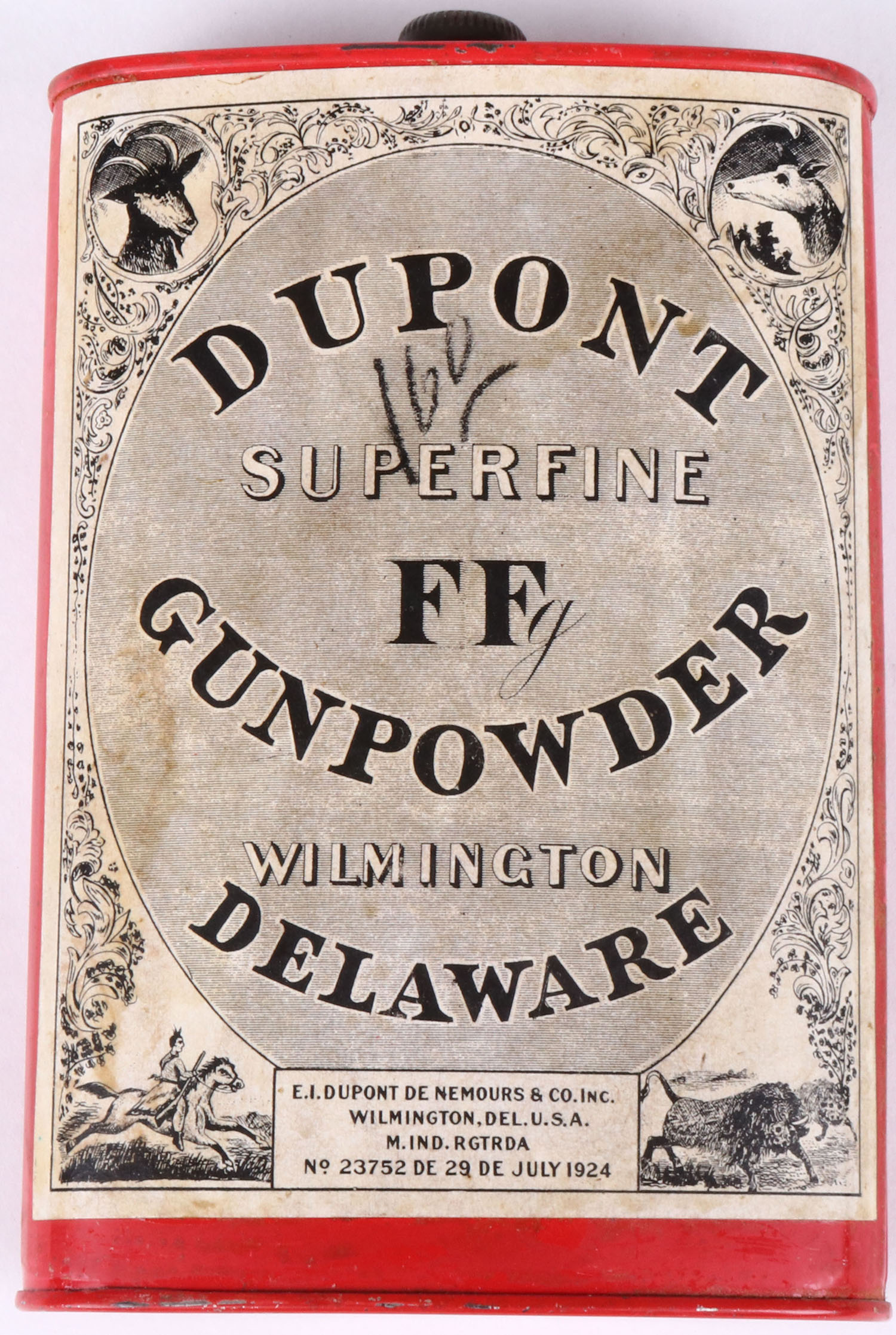 DuPont FFg Gunpowder tin, Empty. Grade: Very Good + - Value: 6 to 60