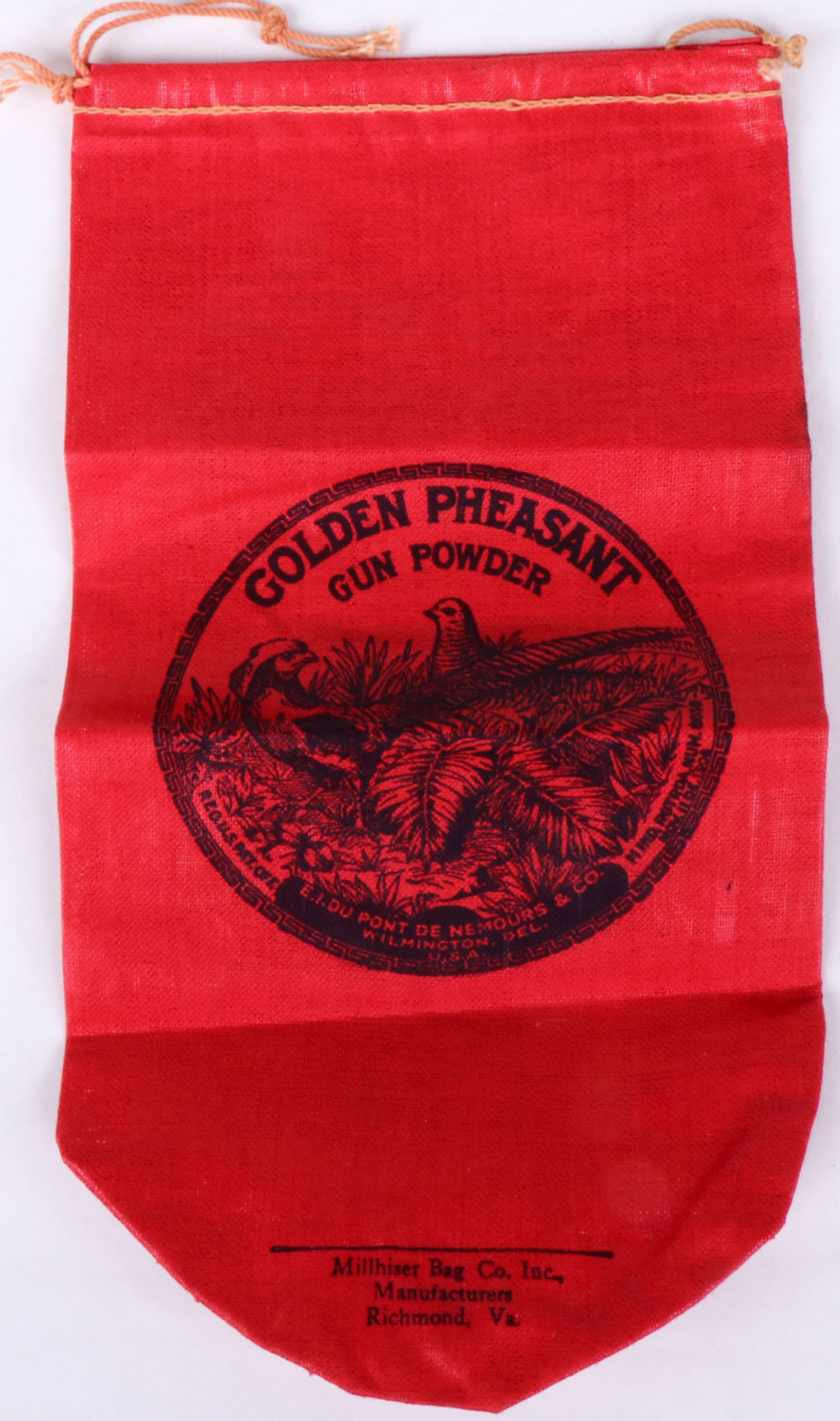 Golden Pheasant Gun powder bag, appear mint. Grade: Excellent ++ - Value: 2 to 20