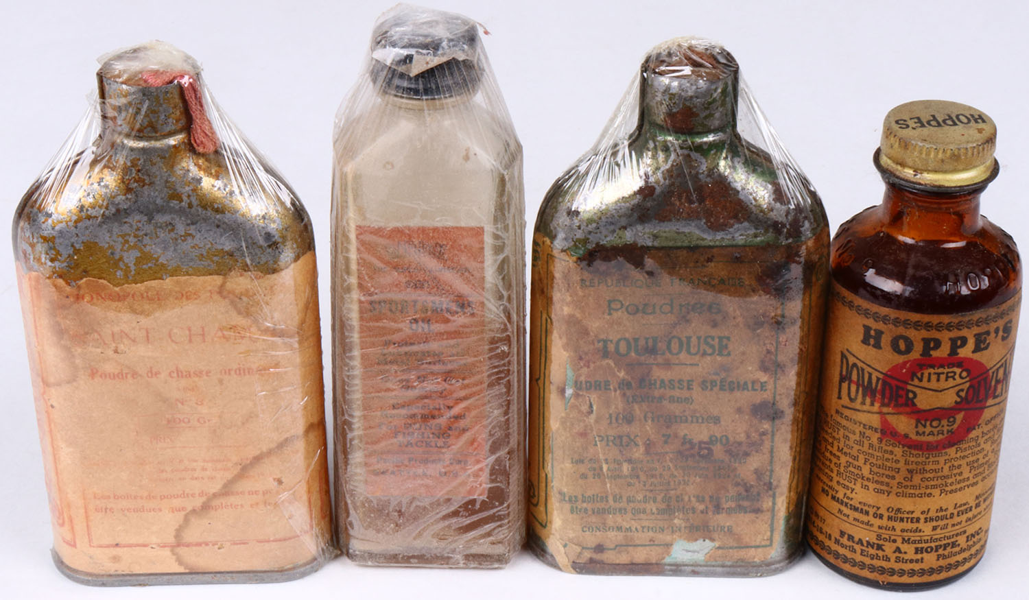 Lot of 4 oil tins, 3 Empty and 1 partial. Grade: Very Good - Value: 4 to 50