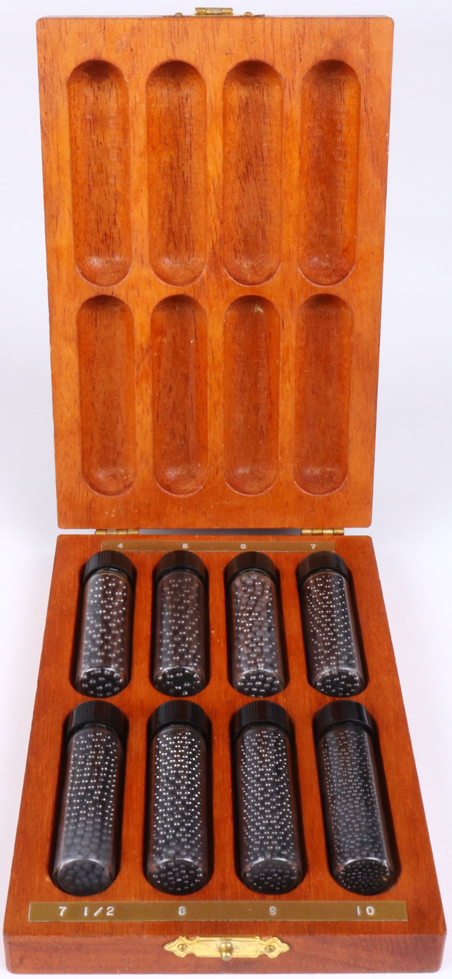 Murdock Lead Company Chilled Lead Shot in wood case, various sizes of shot, all bright and clean. Grade: Excellent ++ - Value: 20 to 200